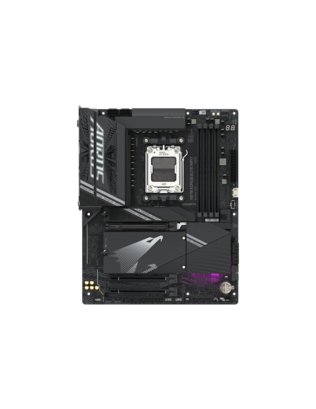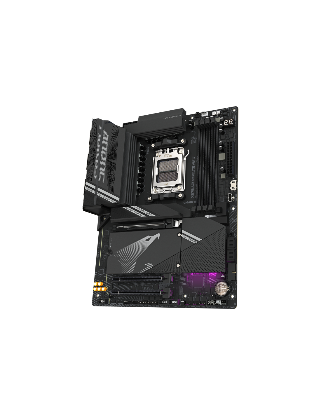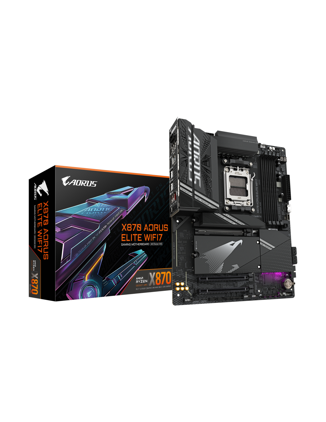 GIGABYTE X870 AORUS ELITE WIFI7 Placa Base - Compatible con CPUs AMD Ryzen 9000, 16+2+2 fases VRM, hasta 8000MHz DDR5 (OC), 3xPCIe 5.0 + 1xPCIe 4.0, Wi-Fi 7, LAN 2.5GbE, USB 4. Fabricante de procesador: AMD, Socket de procesador: Zócalo AM5, Procesador compatible: AMD Ryzen 7000 Series, AMD Ryzen 8000 Series, AMD Ryzen 9000 Series. tipos de memoria compatibles: DDR5-SDRAM, Memoria interna máxima: 256 GB, Tipo de ranuras de memoria: DIMM. Interfaces de disco de almacenamiento soportados: M.2, SATA III, Tipos