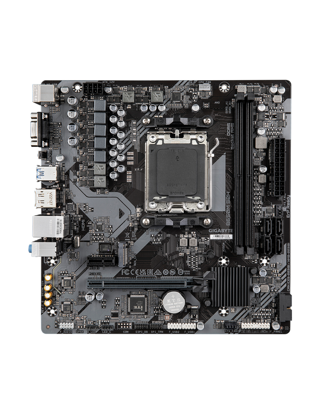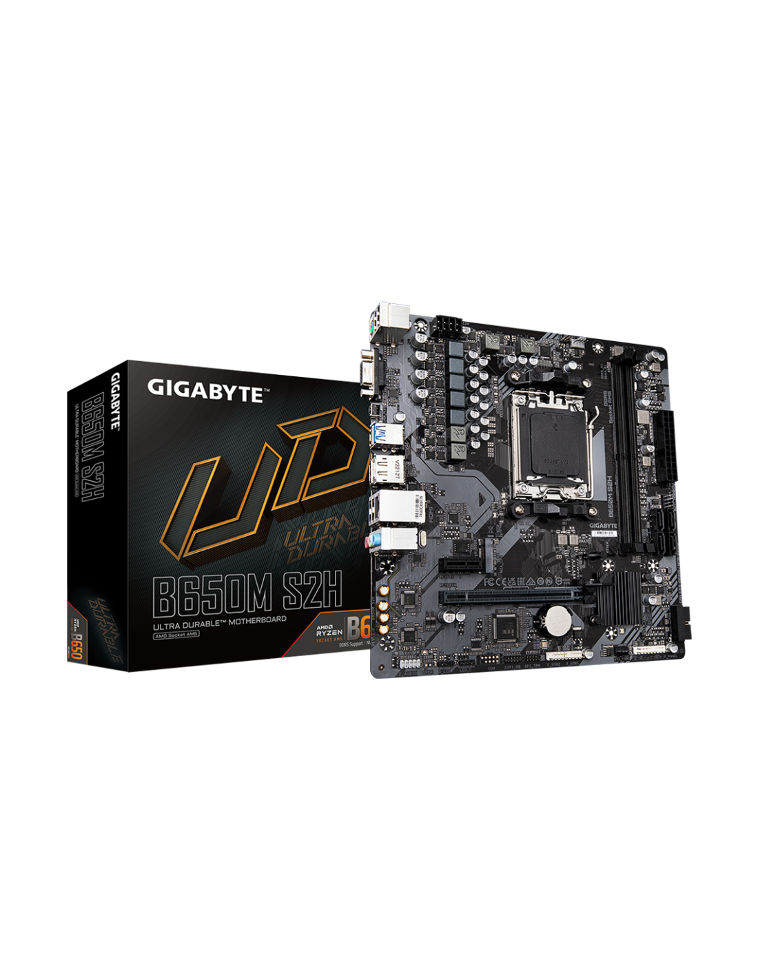 GIGABYTE B650M S2H Placa base - AMD Ryzen serie 9000, VRM de 5+2+2 fases, hasta 6400 MHz DDR5 (OC), 1xPCIe 4.0 M.2, LAN GbE, USB 3.2 Gen 1. Fabricante de procesador: AMD, Socket de procesador: Zócalo AM5, Procesador compatible: AMD Ryzen 7000 Series, AMD Ryzen 8000 Series, AMD Ryzen 9000 Series. tipos de memoria compatibles: DDR5-SDRAM, Memoria interna máxima: 128 GB, Tipo de ranuras de memoria: DIMM. Interfaces de disco de almacenamiento soportados: M.2, SATA III, Tipos de unidades de almacenamiento admiti
