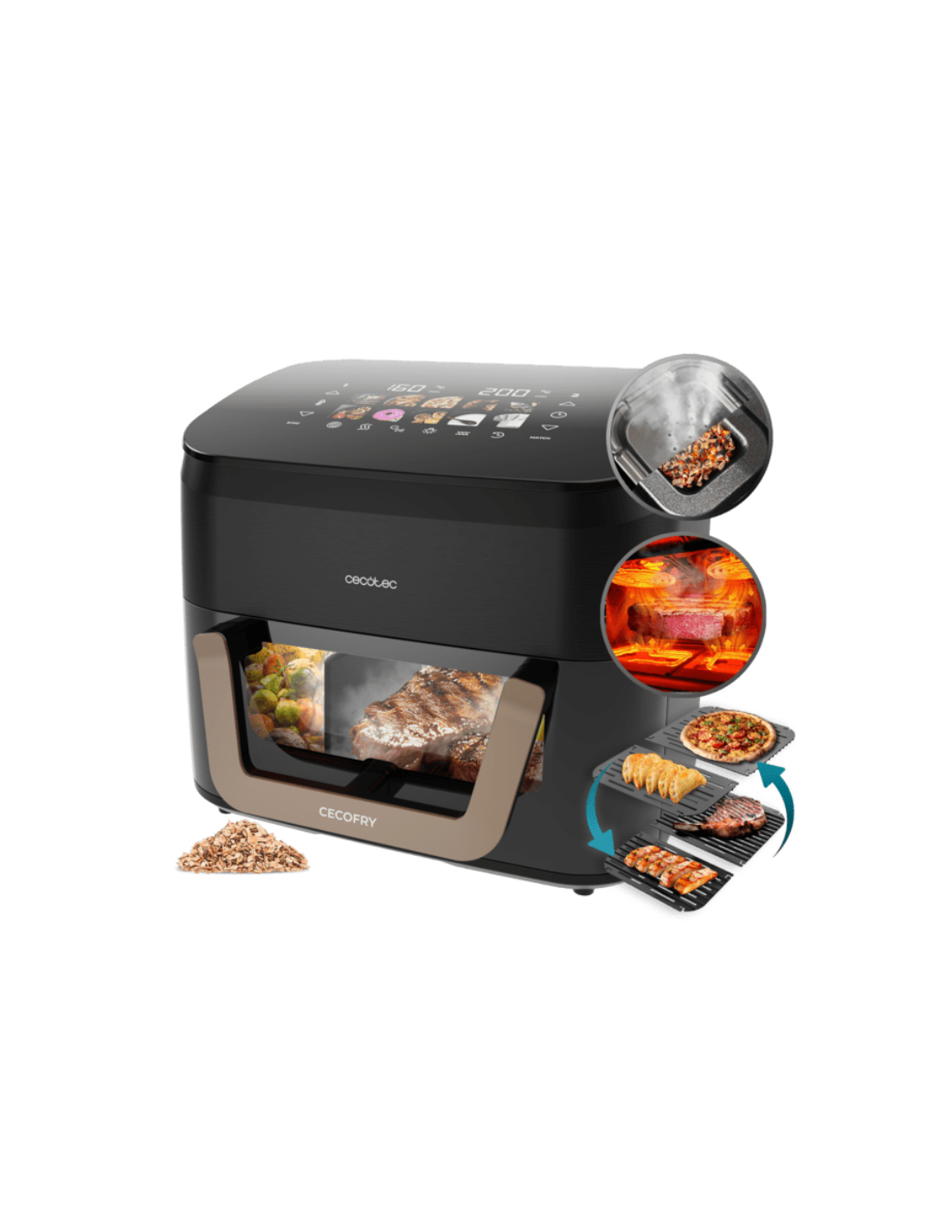 Disfruta del auténtico sabor a parrilla en casa, sin humos y de forma saludable. Añade chips de madera y transforma tus recetas con un toque ahumado único.