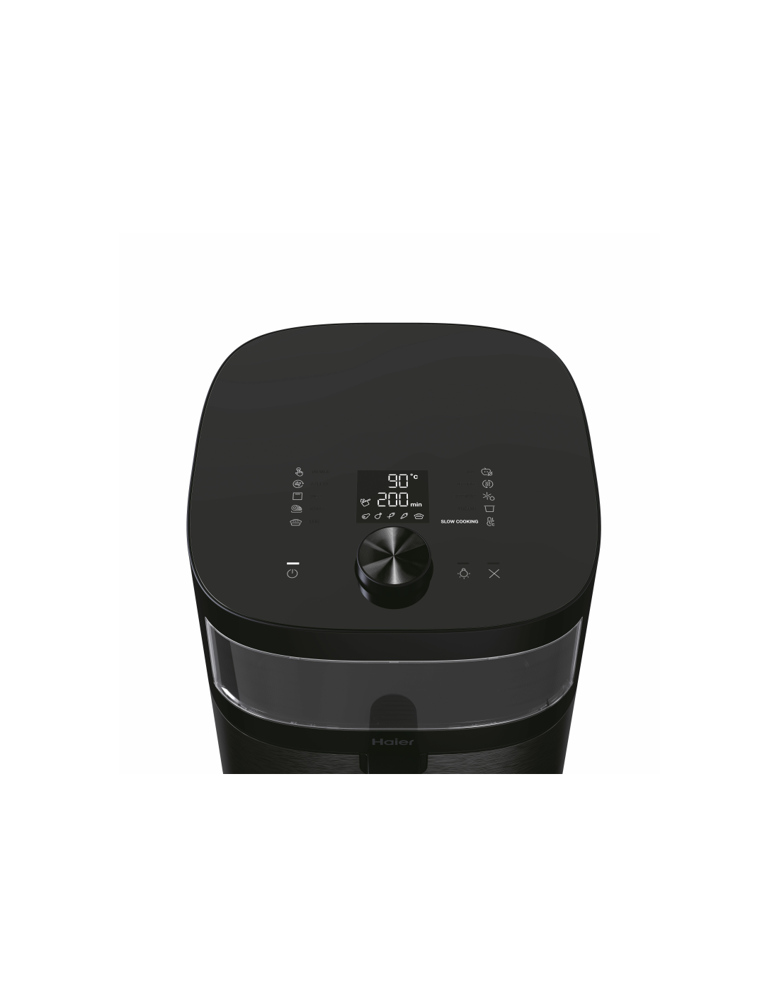 Haier I-Master Series 5 HAF5TWA 011. Tipo de producto: Freidora de aire caliente, Capacidad: 6,5 L, Temperatura (min): 40 °C. Color del producto: Negro, Tipo de control: Giratorio, Tocar, Tipo de instalación: Independiente. Potencia: 2000 W, Potencia máx. de entrada: 2000 W. Ancho: 424 mm, Profundidad: 347 mm, Altura: 306 mm. Ancho del paquete: 429 mm, Profundidad del paquete: 429 mm, Altura del paquete: 427 mm