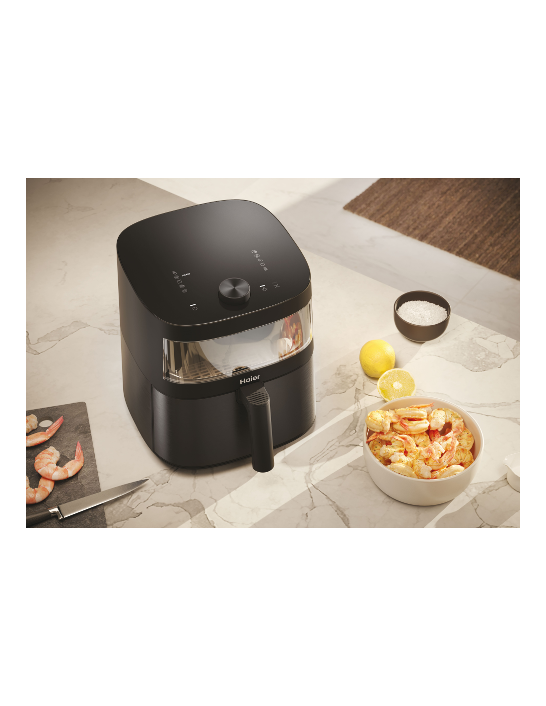 La Air Fryer I-Master Series 5 de Haier es más que una freidora de aire, es un auténtico sous chef con un diseño excepcional. En realidad, es 9 en 1. Gracias a su control de temperatura preciso y amplio, puedes disfrutar de todos los métodos de preparación de alimentos, incluyendo la cocción lenta y el asado. Además, su ventana superior de vidrio transparente es fácil de usar y limpiar, lo que te permite comprobar el progreso de la cocción sin abrir la cesta y perder calor. Un todo en uno para tu cocina que te permite ahorrar hasta un 70% de energía, un 50% de tiempo y un 90% de calorías.