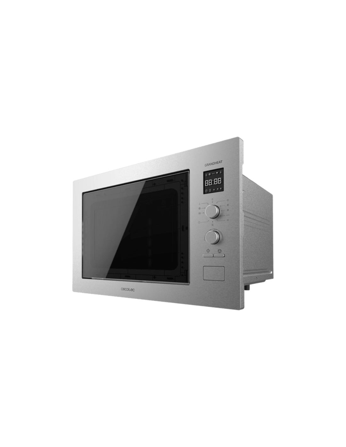 Cecotec 01400. Tipo de instalación: Integrado, Tipo de producto: Microondas con grill, Capacidad interior: 25 L, Potencia del microondas: 1320 W, Pantalla incorporada, Tipo de control: Botones, Giratorio, Color del producto: Negro, Acero