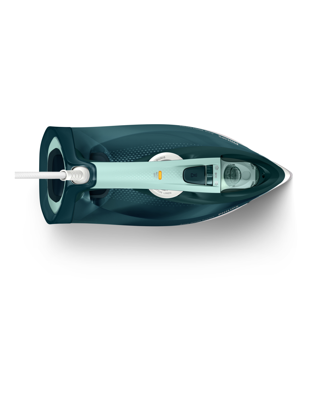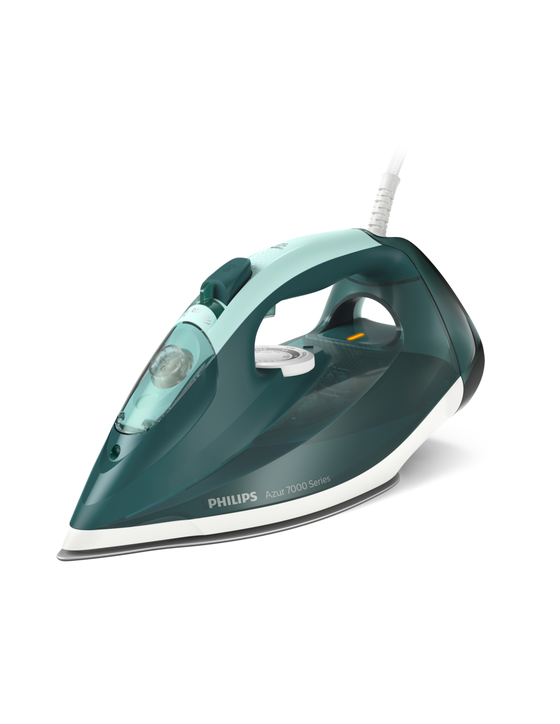 Philips 7000 series DST7031/70 Plancha de vapor HV en verde ópalo/menta. Tipo: Plancha a vapor, Material de la suela/recubrimiento: Suela SteamGlide Plus, Longitud del cable: 2 m. Potencia de la plancha: 2800 W, Voltaje de entrada AC: 220-240 V, Frecuencia de entrada AC: 50-60 Hz. Periodo de garantía: 2 año(s)