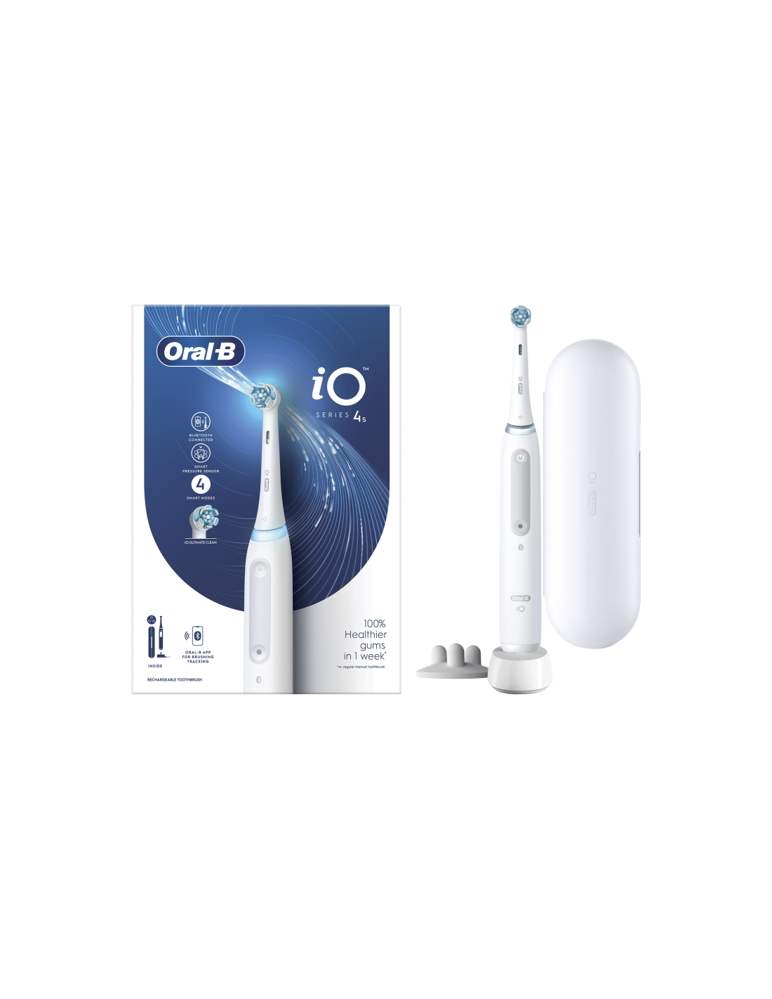 Oral-B iO 4S. Utilizar con: Adulto, Tipo de cepillo de dientes: Cepillo dental vibratorio, Modos del cepillo de dientes: Cuidados diarios, Sensible, Super sensitive, Blanqueador. Fuente de energía: Batería, Tipo de batería: Batería integrada. Tipo de embalaje: Caja. Número de empuñaduras incluidas: 1 pieza(s), Número de cabezales incluido: 1 pieza(s)