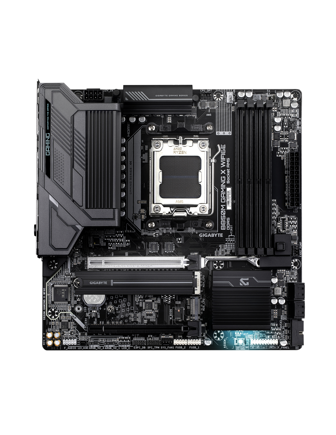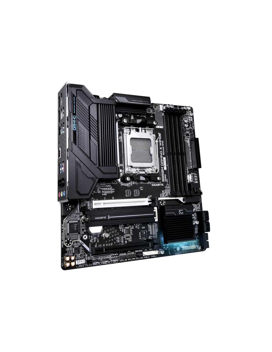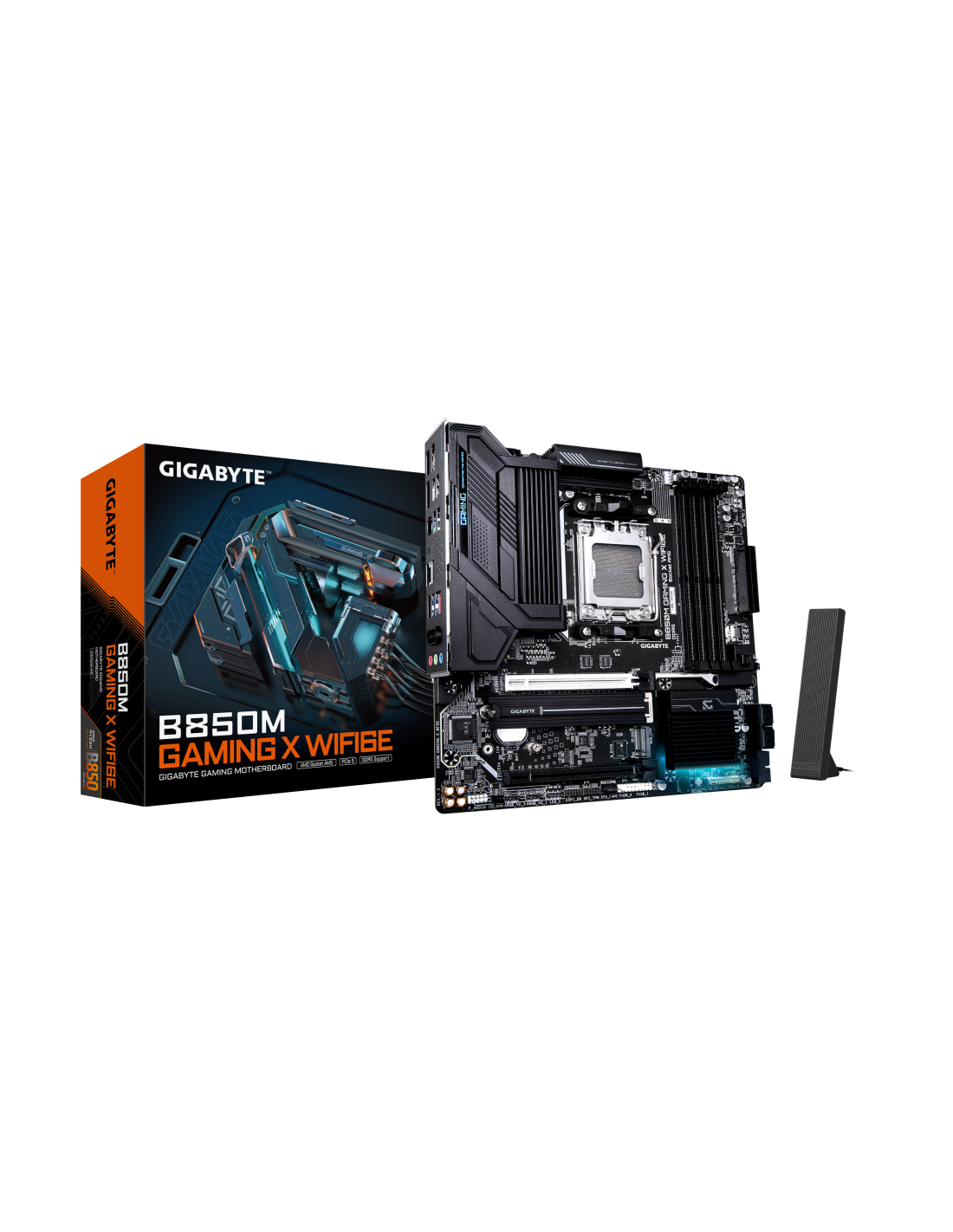 GIGABYTE B850M GAMING X WIFI6E Placa Base - Procesadores AMD Ryzen Serie 9000, VRM Digital 10+2+2 fases, hasta 8200MHz DDR5 (OC), 1xPCIe 5.0 + 1xPCIe 4.0 M.2, LAN 2.5, WIFI 6E, USB 3.2 Gen 2.. Fabricante de procesador: AMD, Socket de procesador: Zócalo AM5, Procesador compatible: AMD Ryzen 7000 Series, AMD Ryzen 8000 Series, AMD Ryzen 9000 Series. tipos de memoria compatibles: DDR5-SDRAM, Memoria interna máxima: 256 GB, Tipo de ranuras de memoria: DIMM. Interfaces de disco de almacenamiento soportados: M.2,