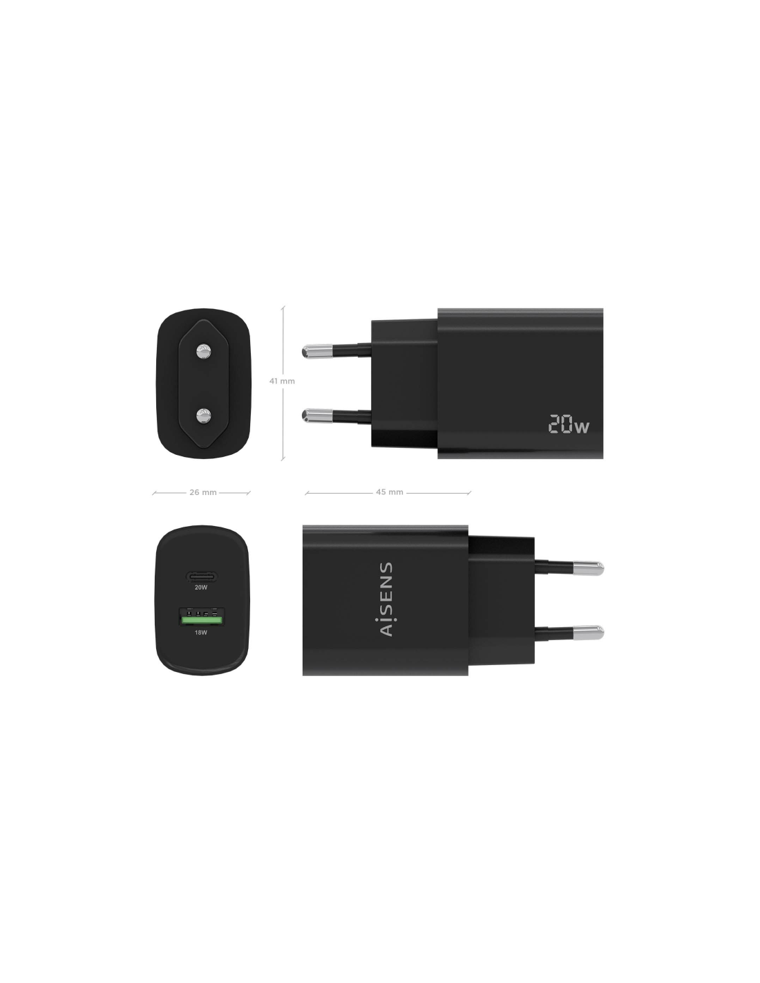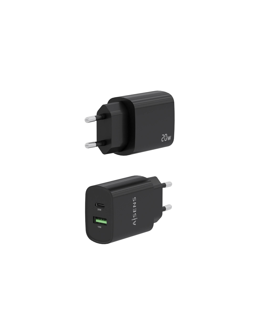 AISENS A110-0755. Tipo de cargador: Interior, Alimentación: Corriente alterna, Compatibilidad del cargador: Universal. Voltaje de entrada: 100 - 240 V, Voltaje de salida máximo: 12,09 V. Cantidad de puertos USB 2.0: 1, Número de puertos USB Tipo C: 1, Carga rápida, Funciones de protección de poder: Sobrecarga, Sobrecarga, Cortocircuito. Color del producto: Negro