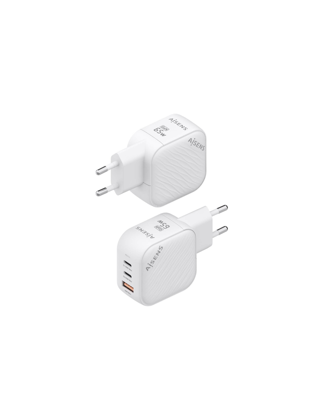 Aisens - Cargador GaN 65W, 2xUSB-C PD3.0 QC4.0, 1xUSB-A QC3.0, Blanco