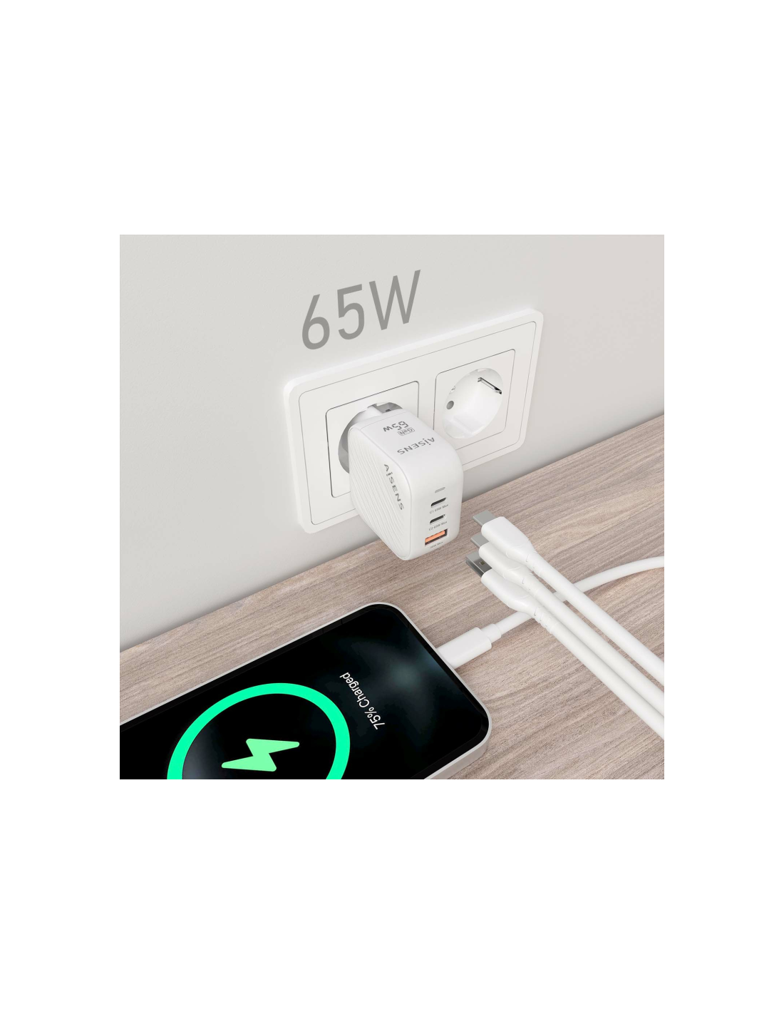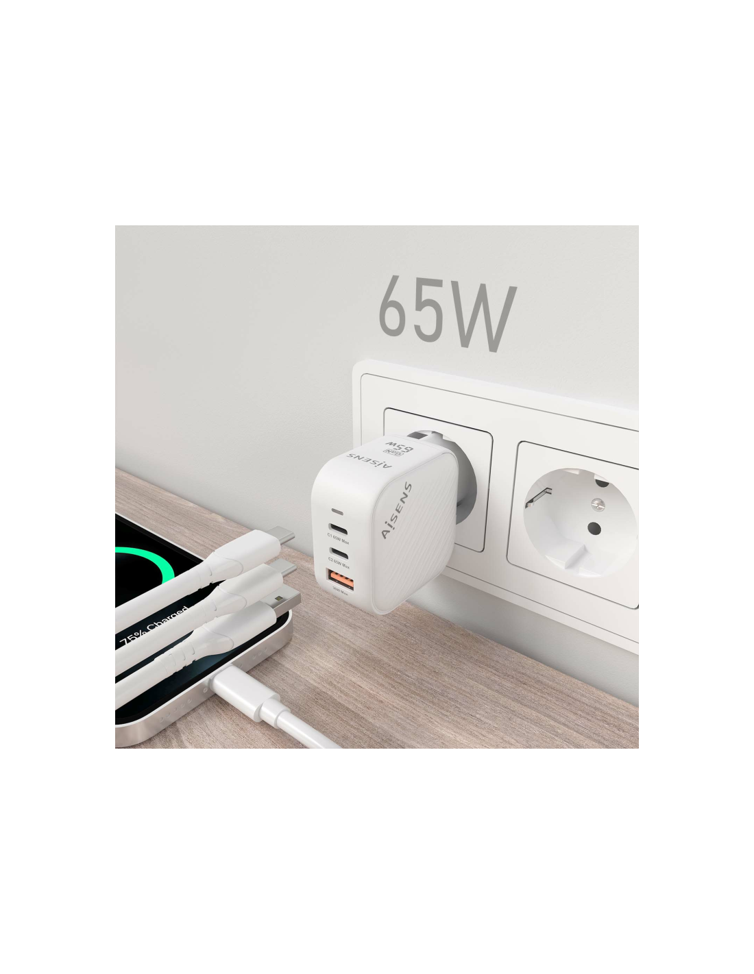 AISENS ASCH-65W3P026-W cargador de dispositivo móvil Universal Corriente alterna Carga rápida Interior
