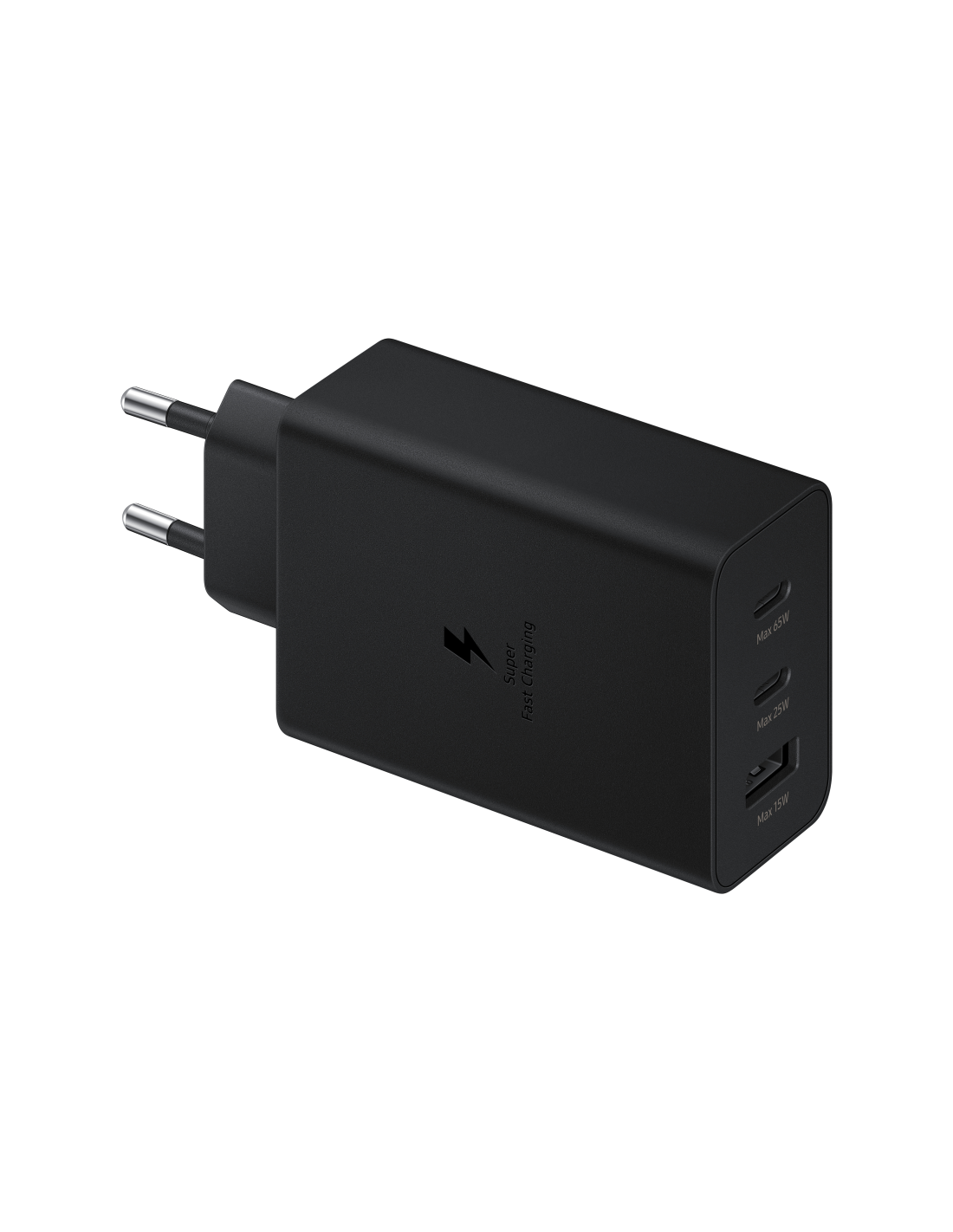 Samsung EP-T6530. Tipo de cargador: Interior, Alimentación: Corriente alterna, Compatibilidad del cargador: Auriculares, Auriculares, Netbook, Portátil, Smartphone, Reloj inteligente, Tableta. Voltaje de entrada: 100/240 V, Voltaje de salida máximo: 20 V. Número de puertos USB Tipo C: 2. Color del producto: Negro