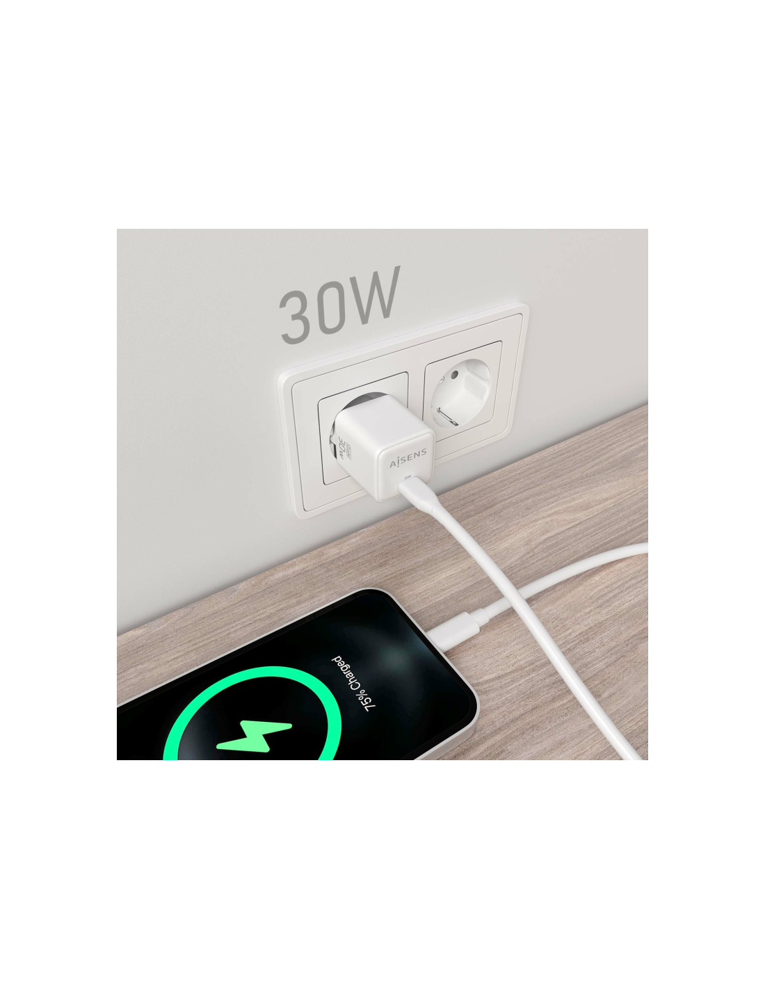 AISENS® – Cargador GaN USB-C 30W para cargar portátiles, móviles, cámaras y tablets etc.