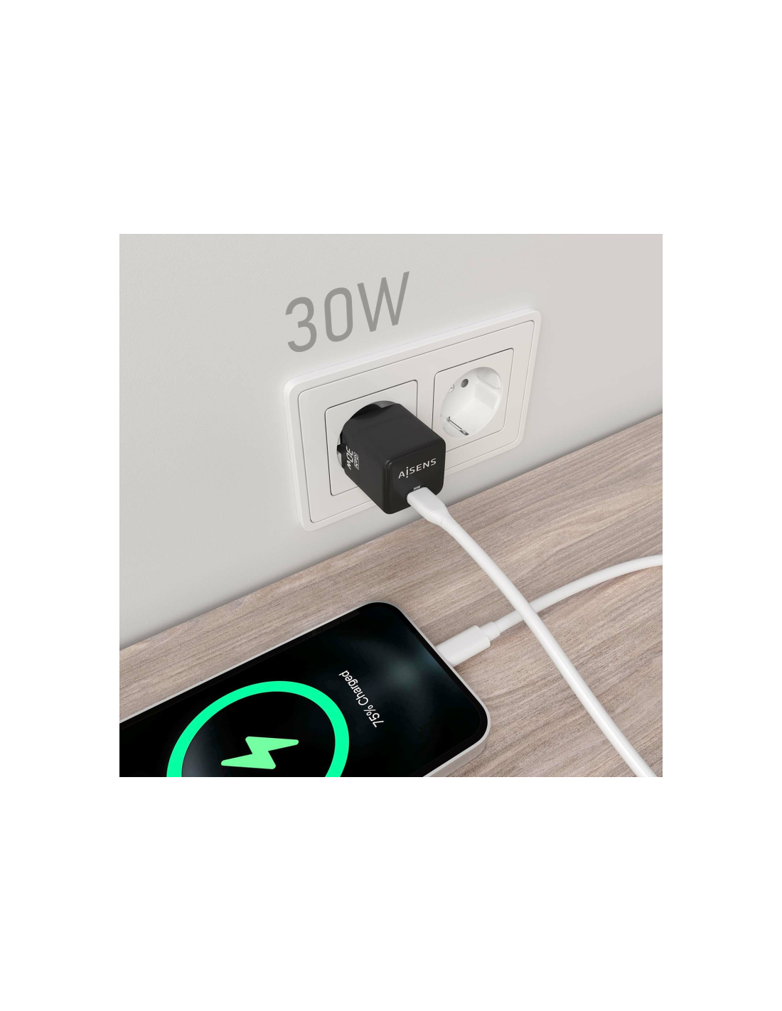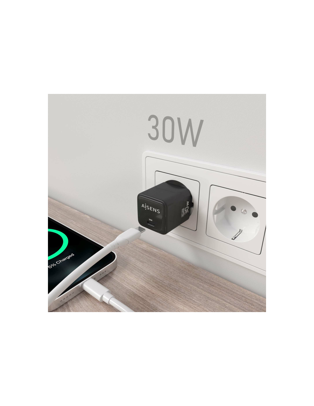 AISENS® – Cargador GaN USB-C 30W para cargar portátiles, móviles, cámaras y tablets etc.