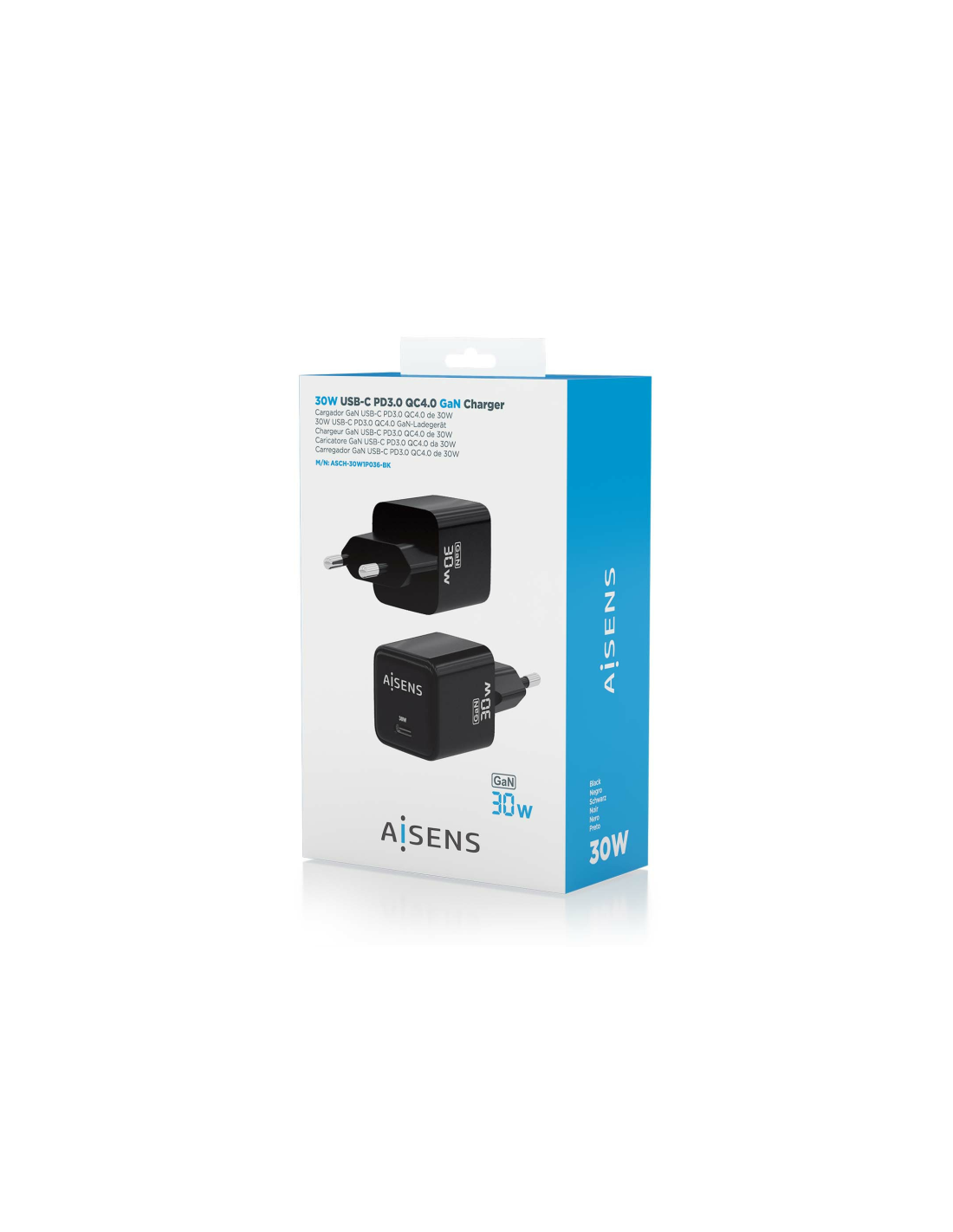 AISENS ASCH-30W1P036-BK cargador de dispositivo móvil Universal Corriente alterna Carga rápida Interior