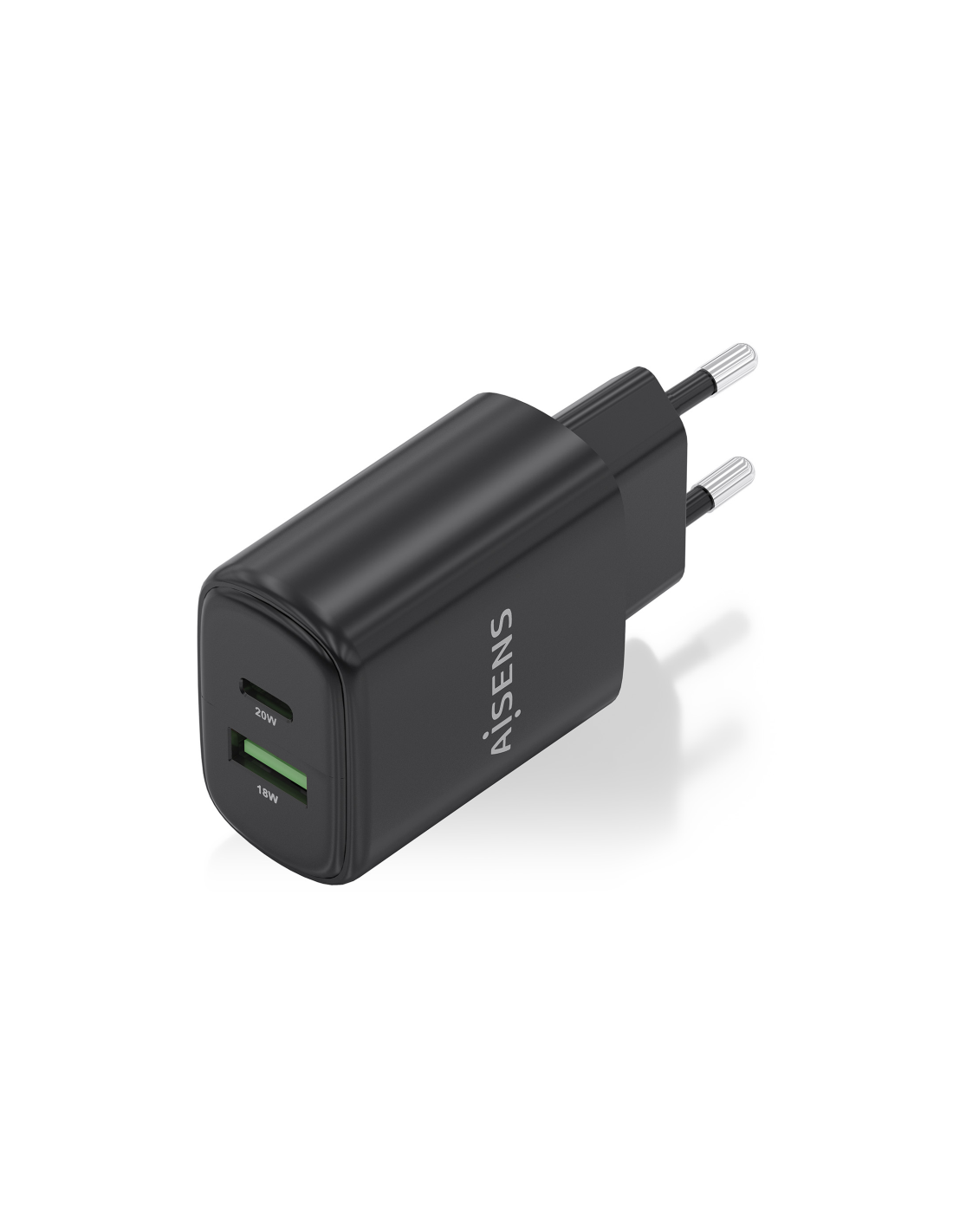 AISENS Cargador GaN 20W, 1xUSB-C PD3.0, 1xUSB-A QC3.0, Negro. Tipo de cargador: Interior, Alimentación: Corriente alterna, Compatibilidad del cargador: Universal. Voltaje de entrada: 100-240 V. Número de puertos USB Tipo C: 1, Carga rápida. Color del producto: Negro