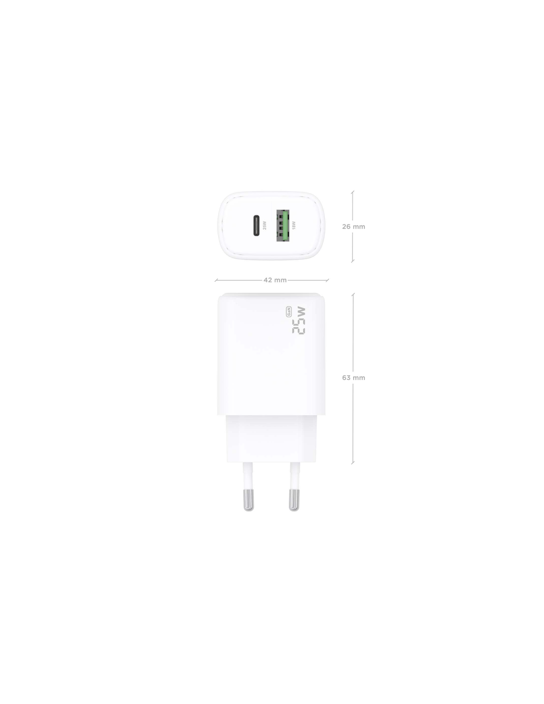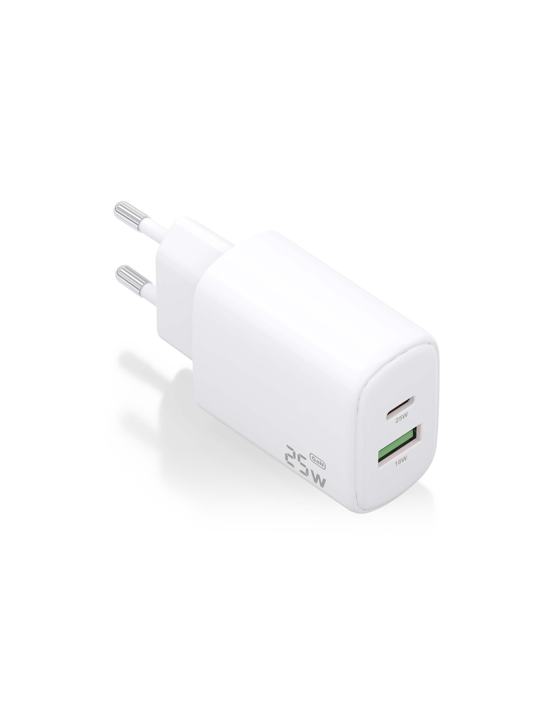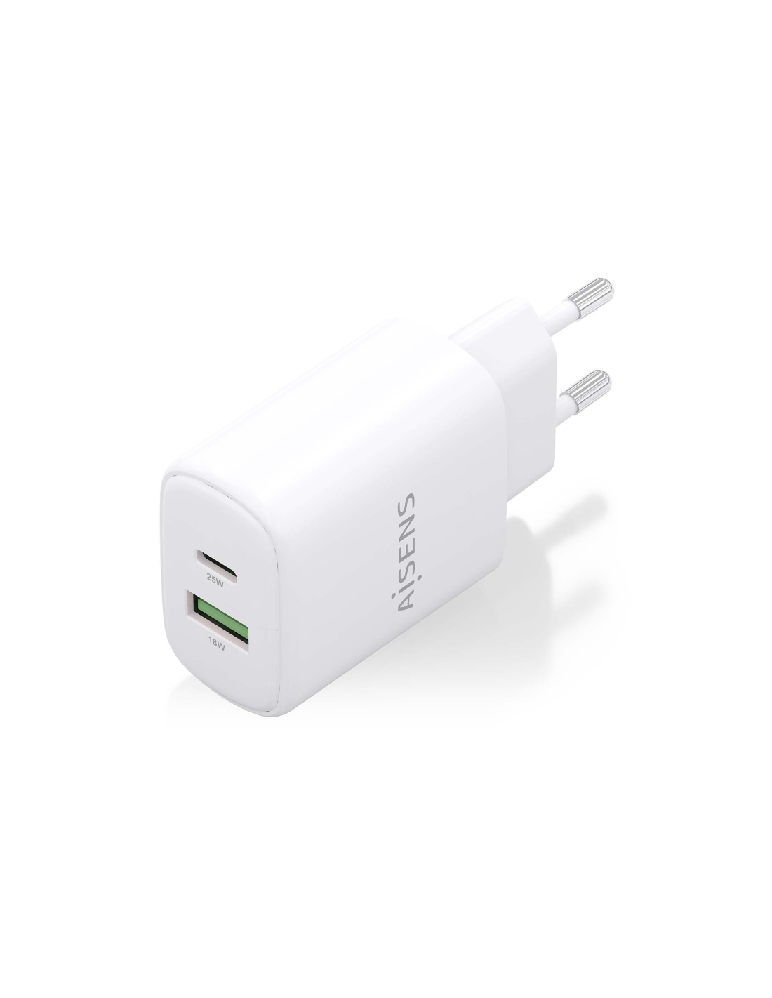 AISENS Cargador GaN 25W, 1xUSB-C PD3.0, 1xUSB-A QC3.0, Blanco. Tipo de cargador: Interior, Alimentación: Corriente alterna, Compatibilidad del cargador: Universal. Voltaje de entrada: 100-240 V. Número de puertos USB Tipo C: 1, Carga rápida. Color del producto: Blanco