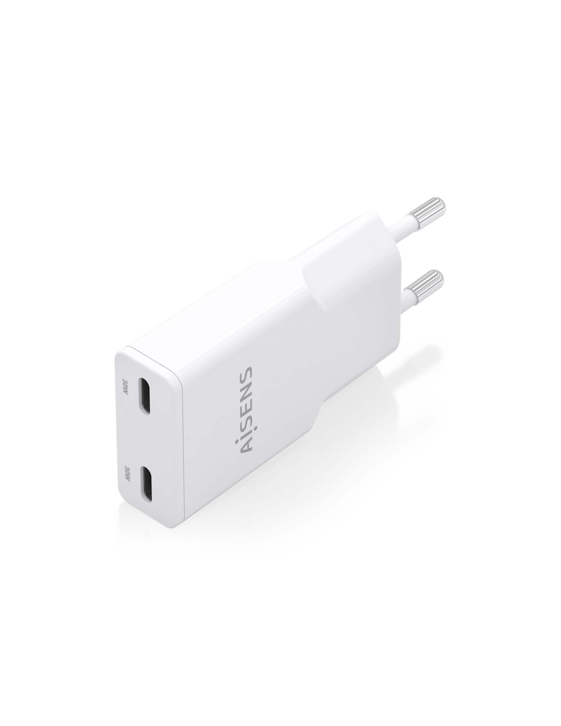AISENS ASCH-30W2P048-W. Tipo de cargador: Interior, Alimentación: Corriente alterna, Compatibilidad del cargador: Cámara digital, MP3, MP4, Teléfono móvil, Navegante, Portátil, Consola de juegos portátil,.... Voltaje de entrada: 100 - 240 V, Voltaje de salida máximo: 20 V. Número de puertos USB Tipo C: 2, Carga rápida, Funciones de protección de poder: Sobrecarga, Cortocircuito. Color del producto: Blanco