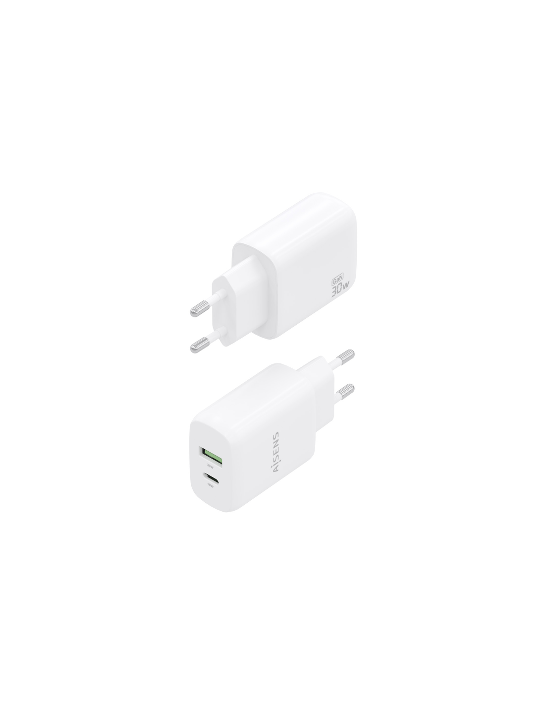 - Cargador GaN USB-C 30W para cargar portátiles, móviles, cámaras y tablets etc. Diseño muy elegante, moderno y práctico.