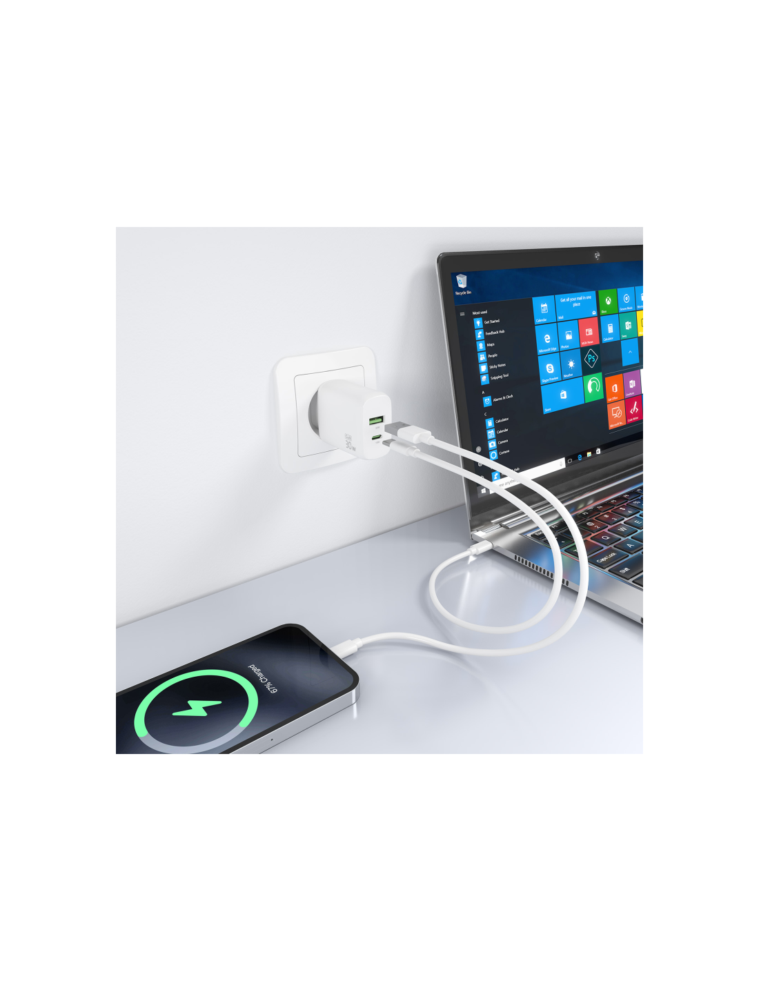 - Cargue su dispositivo USB-C o USB-A de forma fácil y sencilla.