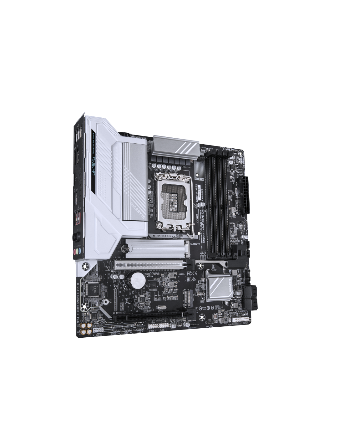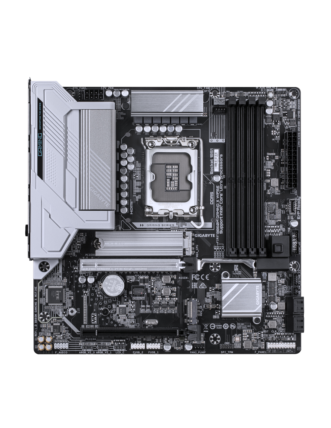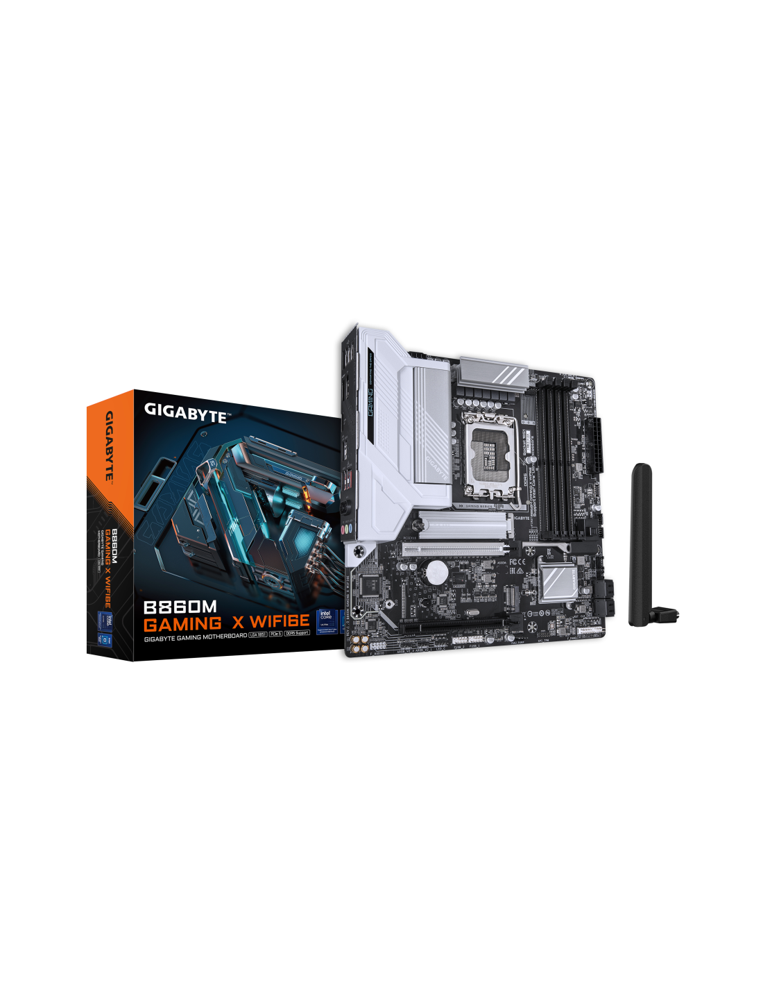 GIGABYTE B860M GAMING X WIFI6E Placa base - CPUs Intel Core Ultra, VRM de 8+1+2+2 fases, hasta 9200MHz DDR5, 1xPCIe 5.0 + 1xPCIe 4.0 M.2, LAN 2,5 GbE, WIFI 6E, USB 4. Fabricante de procesador: Intel, Socket de procesador: LGA 1851 (Socket V1), Procesador compatible: Intel Core Ultra (Serie 1), Intel Core Ultra (Series 2). tipos de memoria compatibles: DDR5-SDRAM, Memoria interna máxima: 256 GB, Tipo de ranuras de memoria: DIMM. Interfaces de disco de almacenamiento soportados: M.2, SATA III, Tipos de unidad