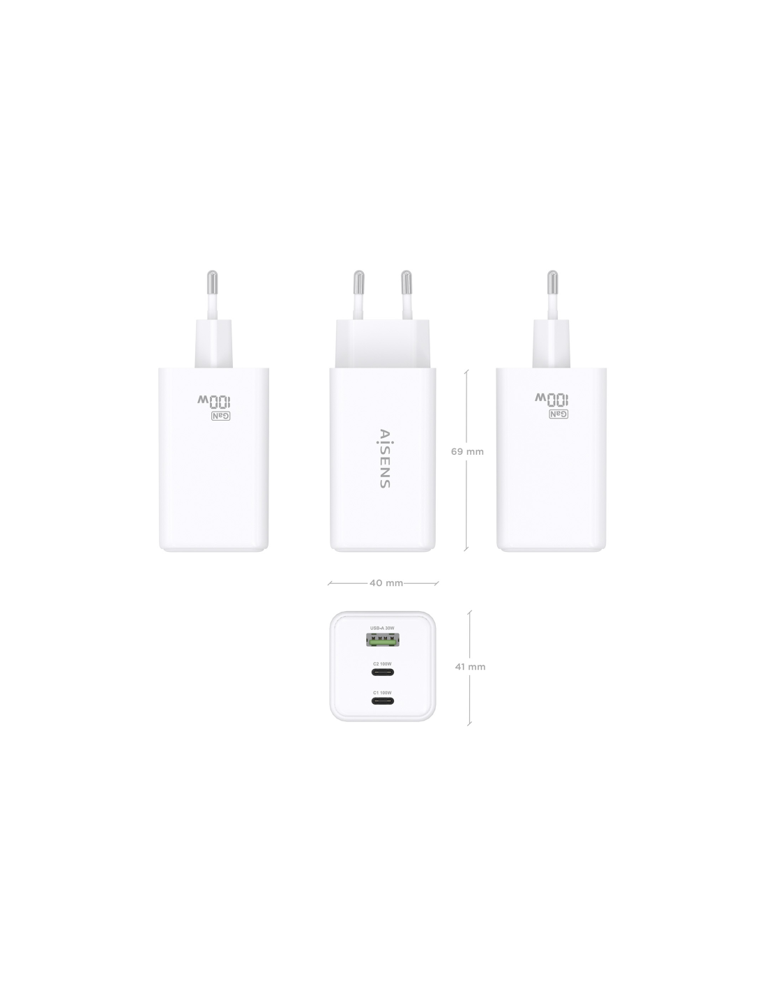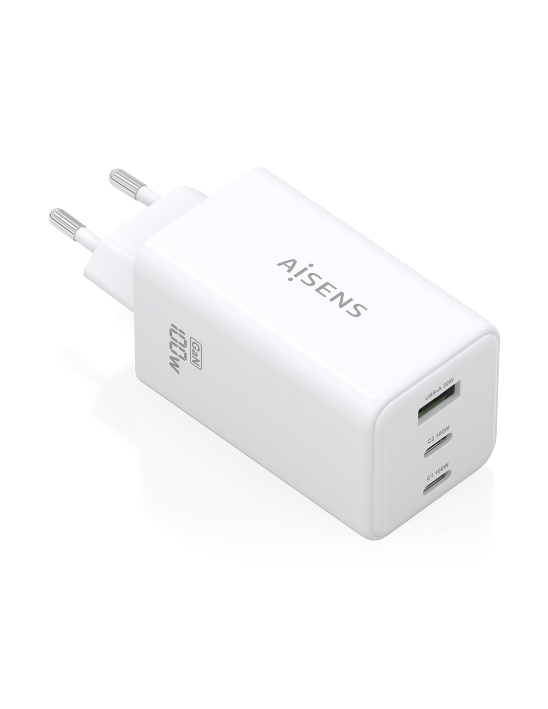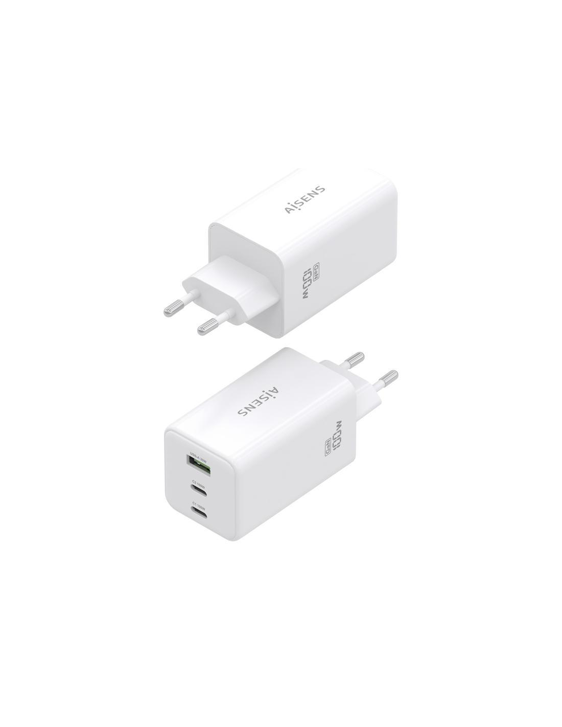 AISENS Cargador GaN 100W, 2x USB-C PD3.0 QC4.0 QC5.0, 1x USB-A QC3.0, Blanco
