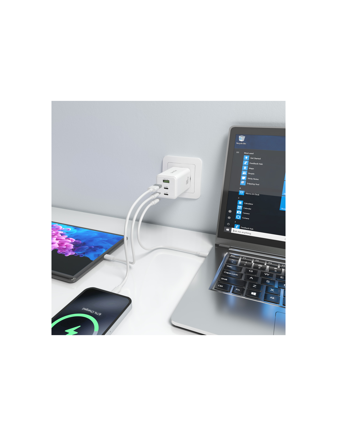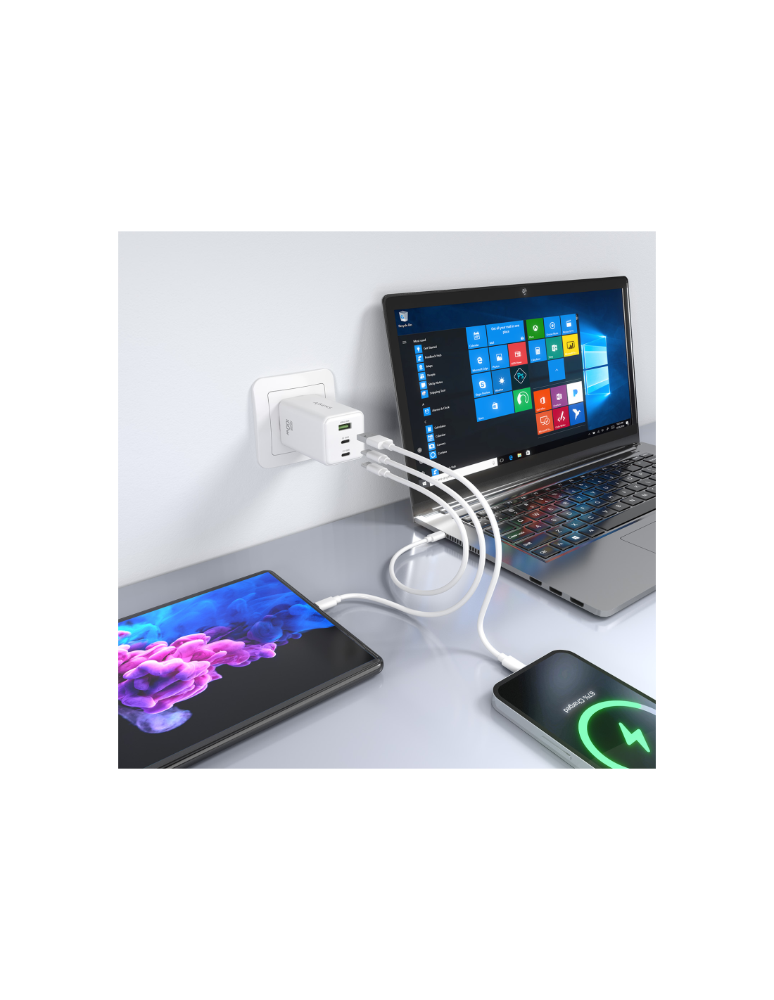 > Este cargador puede cargar simultáneamente 3 dispositivos USB-A y USB-C a máxima velocidad.