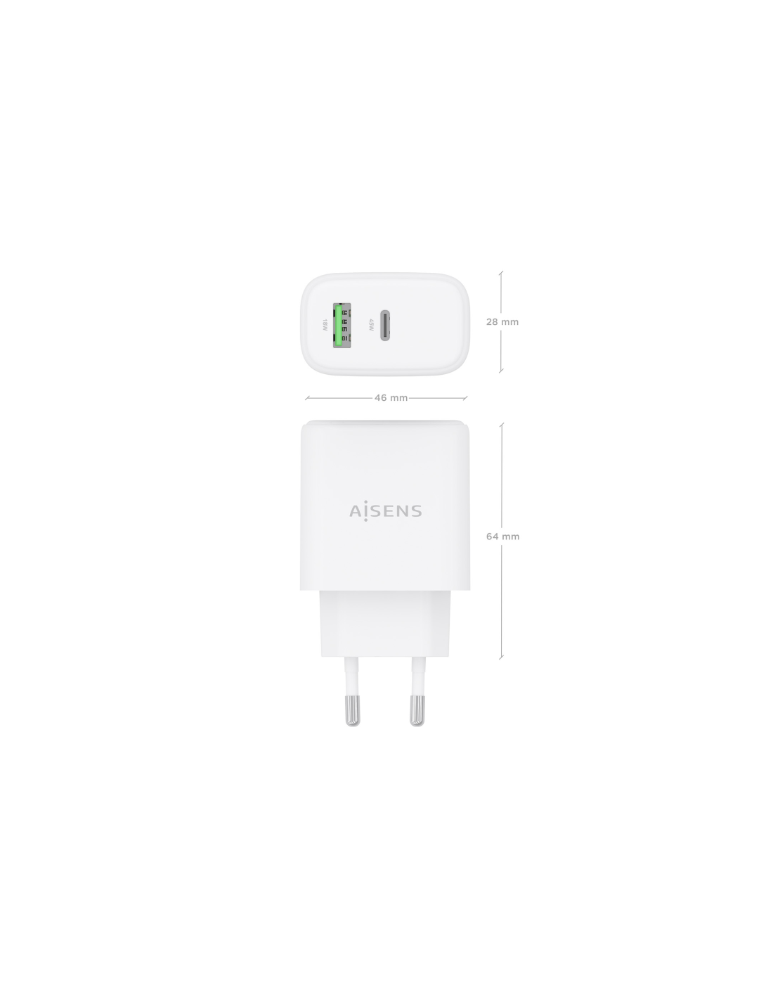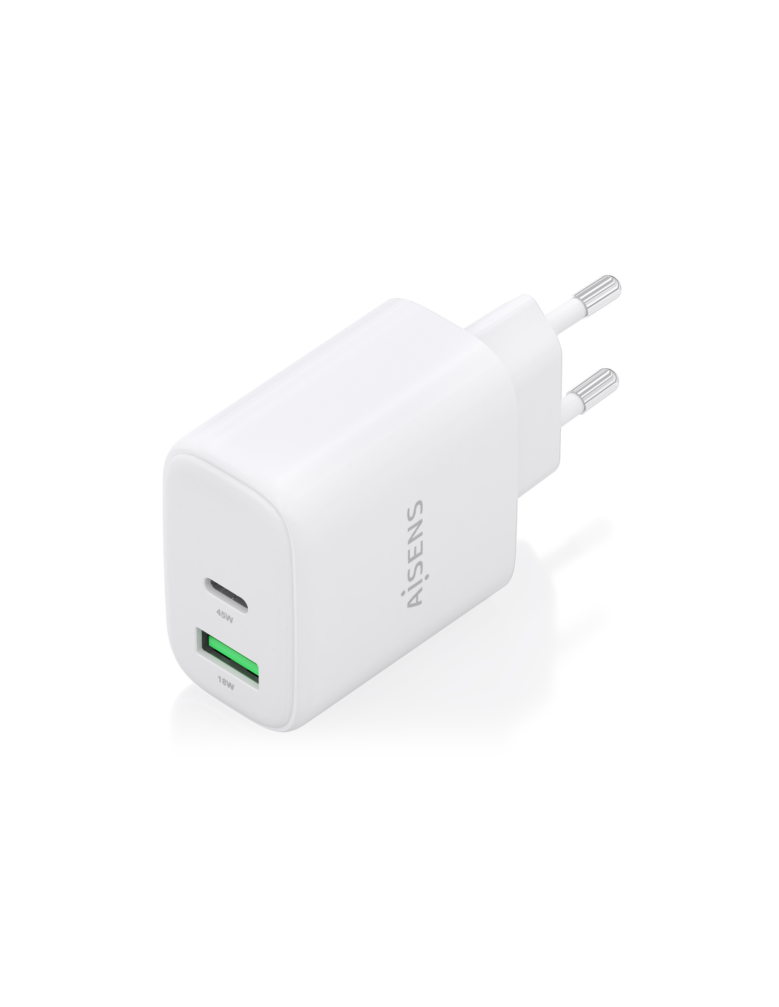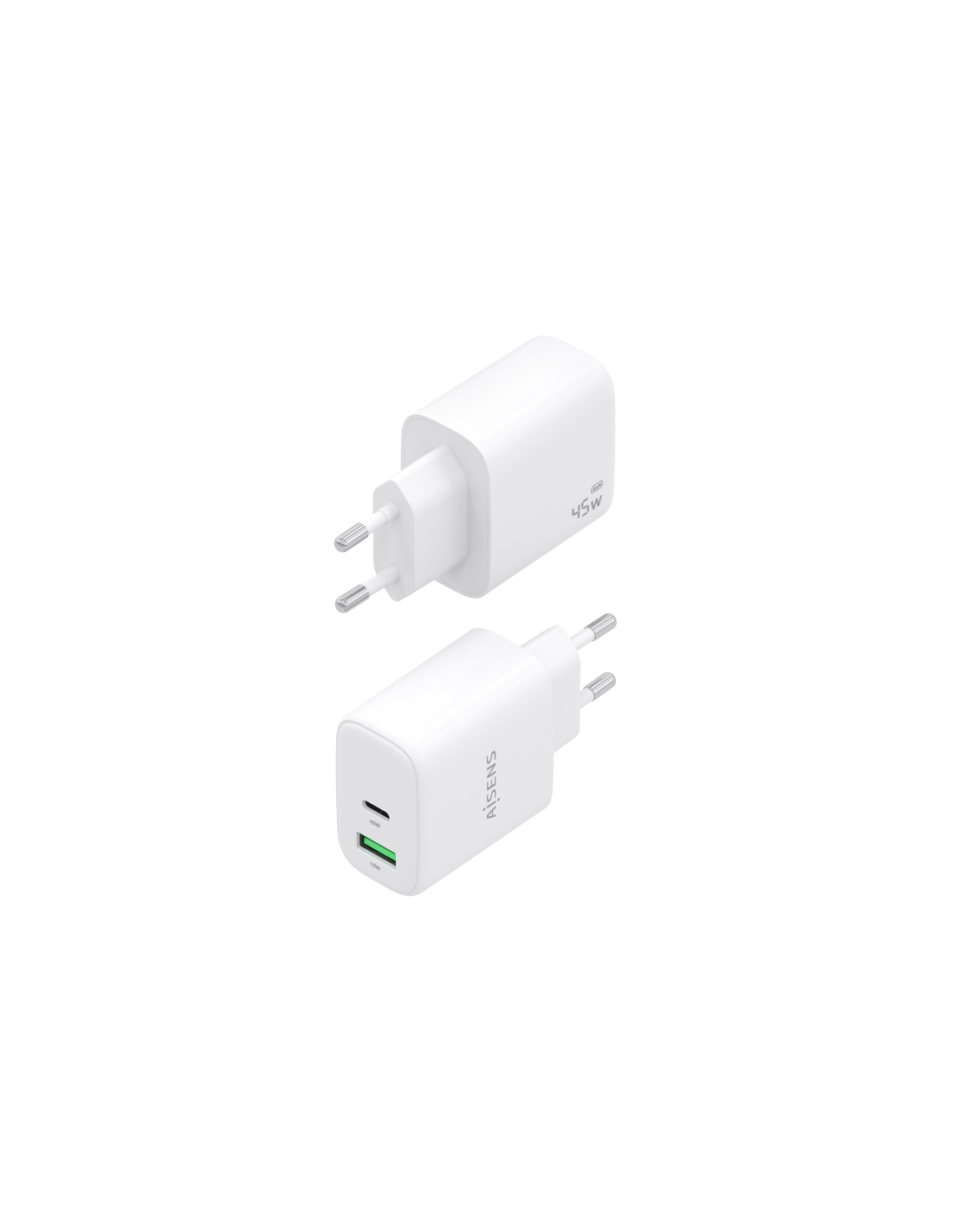 AISENS Cargador GaN 45W, 1xUSB-C PD3.0 QC4.0, 1xUSB-A QC3.0, Blanco