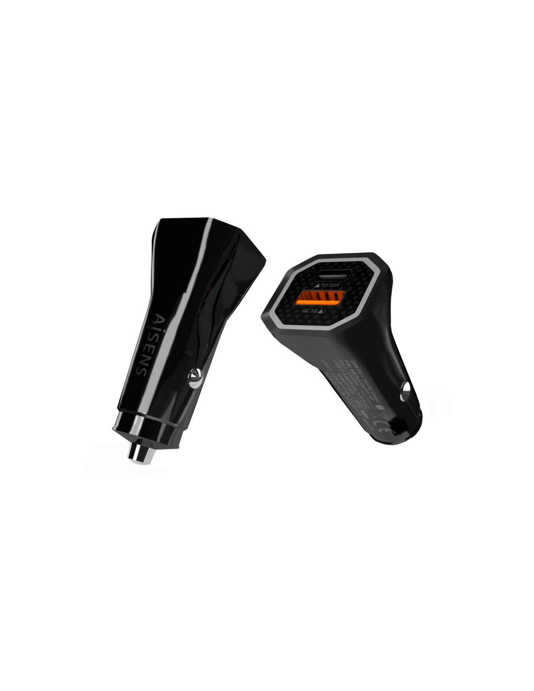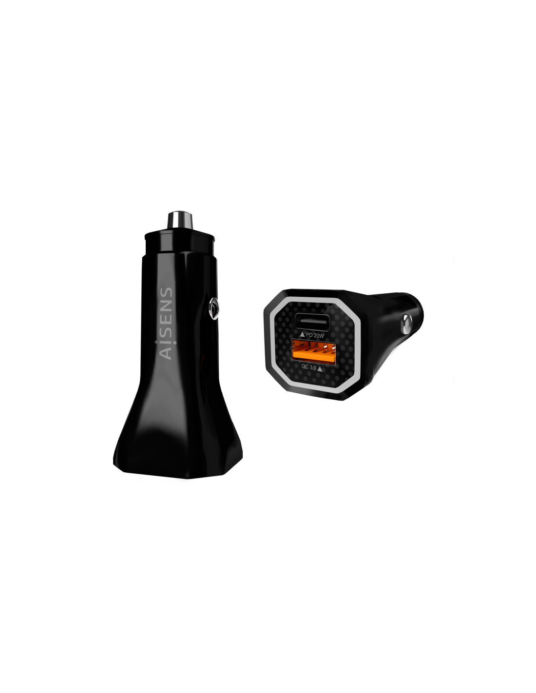 AISENS® – Cargador de Coche 38W,1XUSB-C PD3.0 20W,1XUSB-A QC3.0 18W, Negro