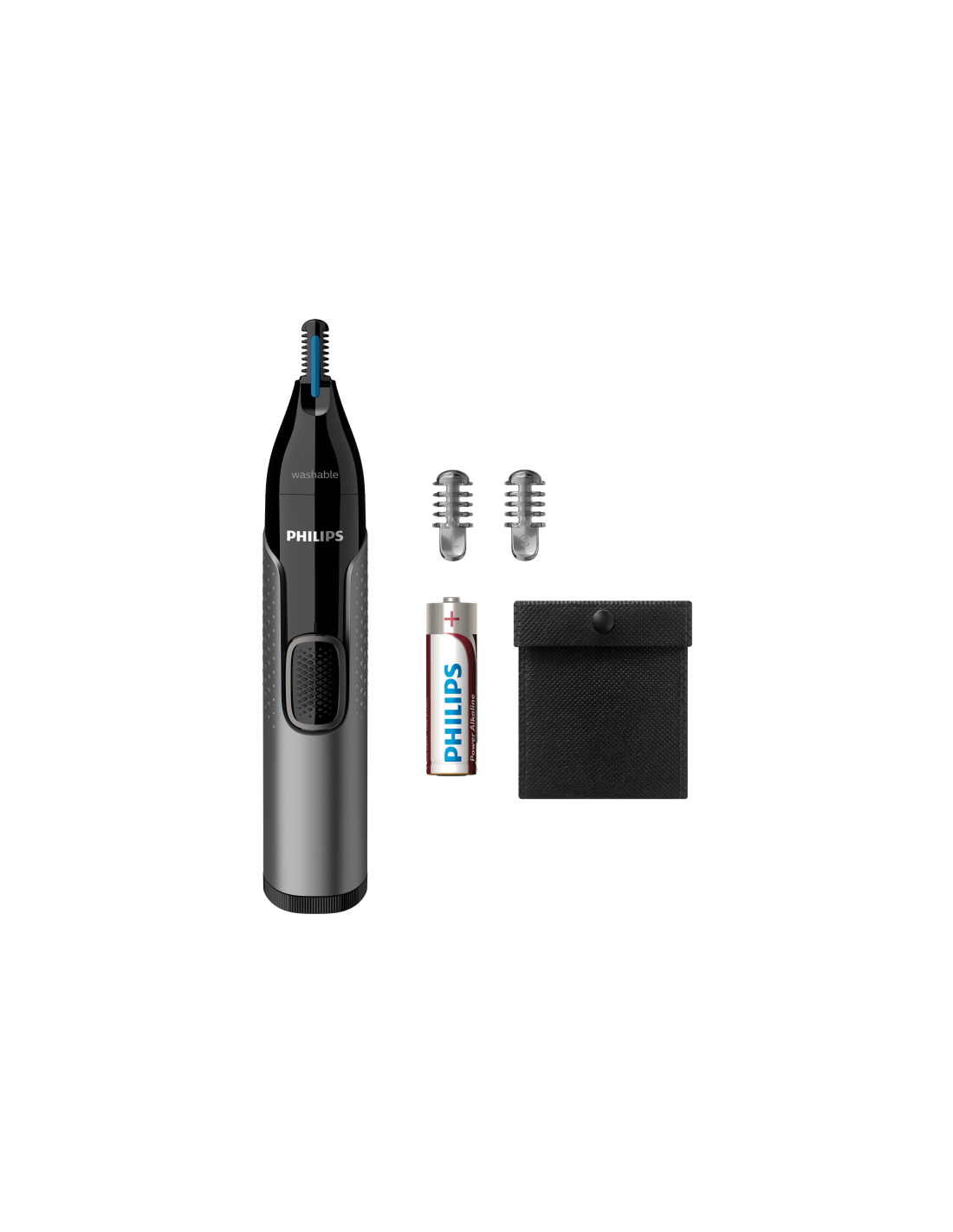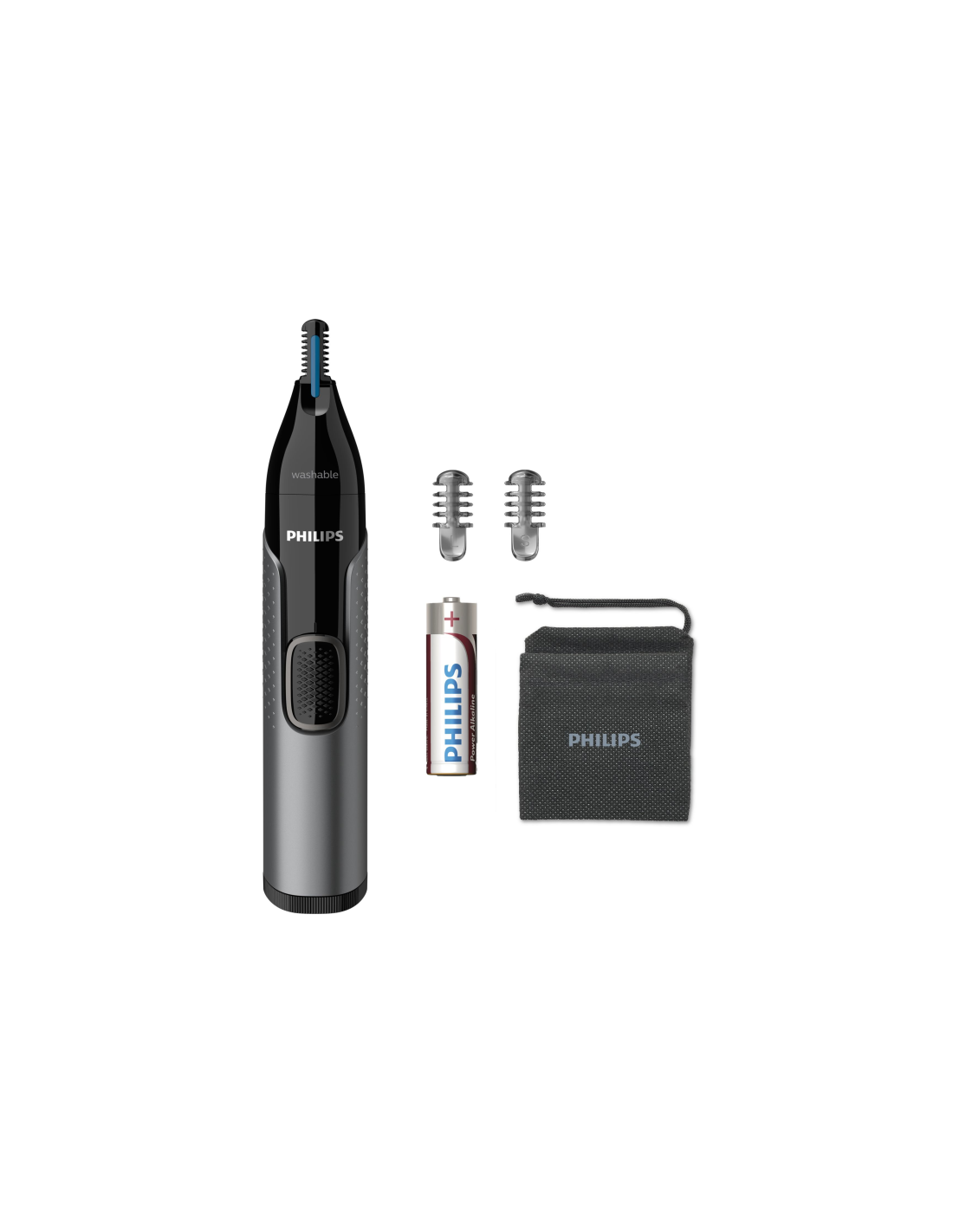 Philips 3000 series Nose trimmer series 3000 NT3650/16 Recortador para nariz, orejas, cejas. Color del producto: Gris, Material de la cuchilla: Acero inoxidable. Fuente de energía: Batería, Tipo de batería: AA, Tecnología de batería: Alcalino