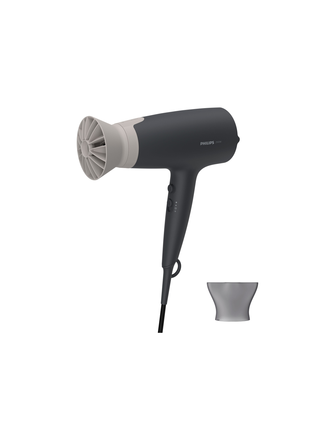 Philips 3000 series BHD351/10 Secador. Tipo de motor: CC. Color del producto: Gris, Tipo de colgador: Anilla para colgar, Longitud del cable: 1,8 m. Potencia: 2100 W, Voltaje de entrada AC: 220-240 V. Altura de la boquilla estrecha: 1,4 cm