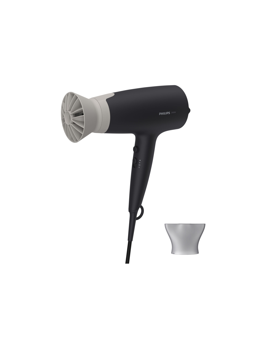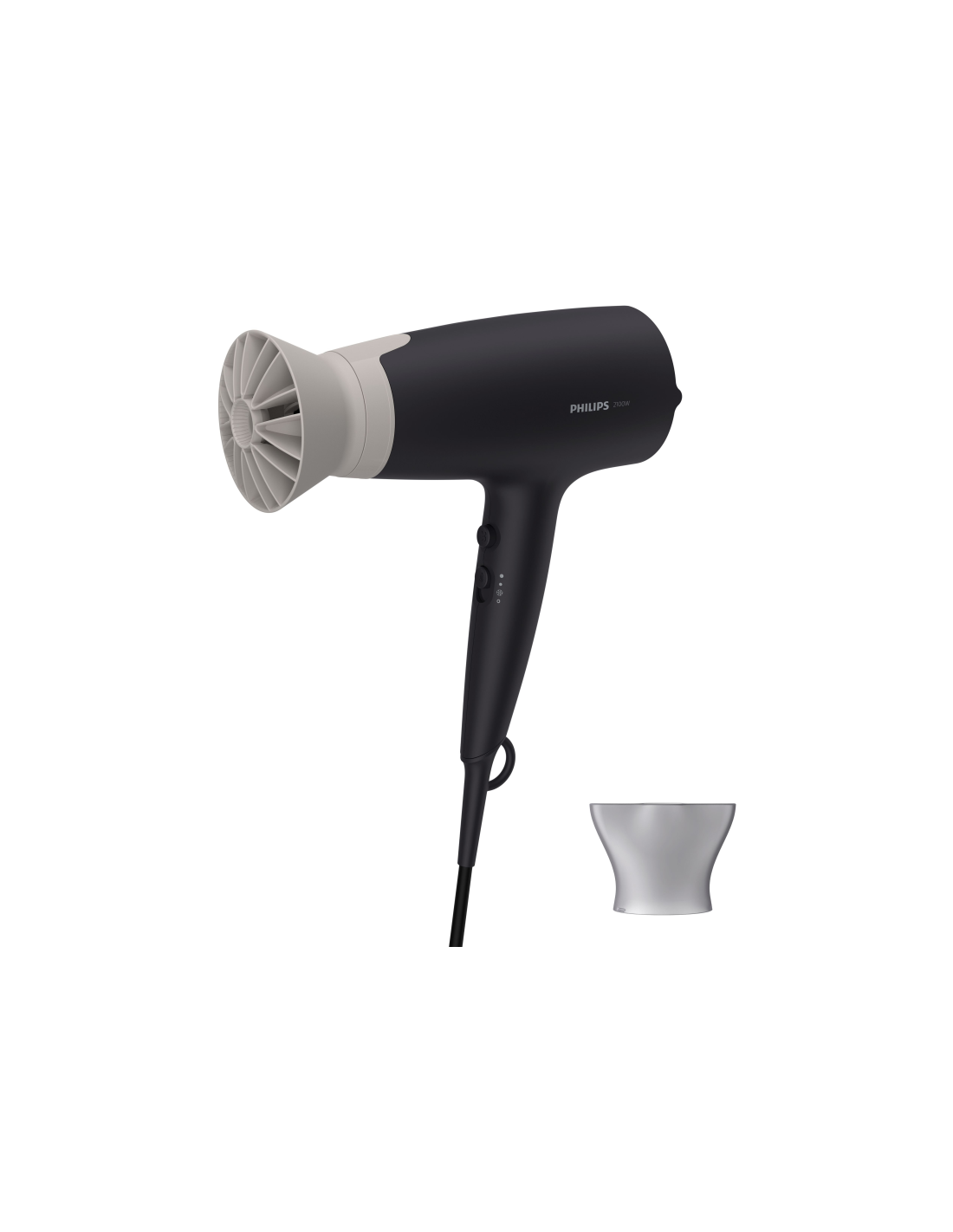 Philips 3000 series BHD341/30 Secador. Tipo de motor: CC. Color del producto: Negro, Gris, Tipo de colgador: Anilla para colgar, Longitud del cable: 1,8 m. Potencia: 2100 W, Voltaje de entrada AC: 220-240 V. Altura de la boquilla estrecha: 1,4 cm