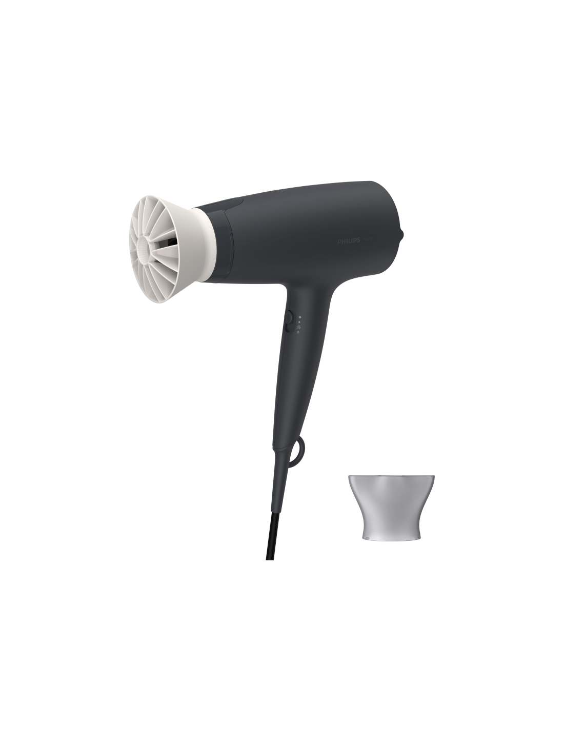 Philips 3000 series BHD302/10 Secador. Tipo de motor: CC. Color del producto: Negro, Tipo de colgador: Anilla para colgar, Longitud del cable: 1,8 m. Potencia: 1600 W, Voltaje de entrada AC: 220 - 240 V. Anchura de la boquilla estrecha: 1 mm, Altura de la boquilla estrecha: 1,4 cm