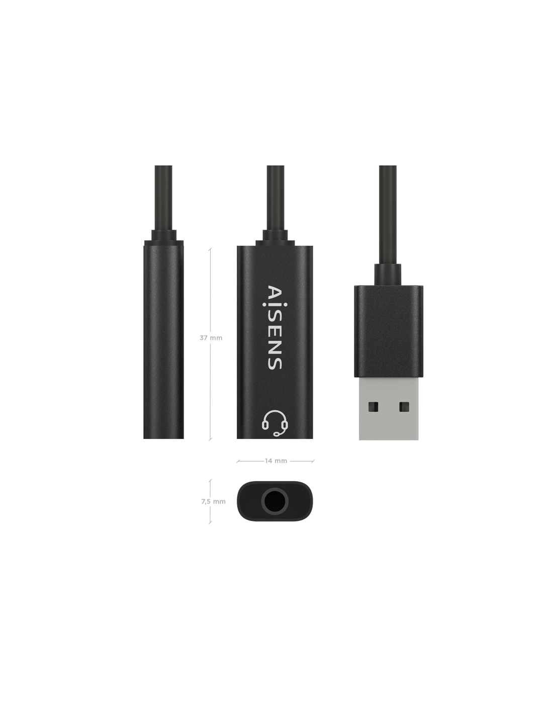AISENS Conversor USB-A a Audio 48KHz, USB-A/M-Jack 3.5/H, Negro, 10 cm. Conector 1: USB-A, Conector 2: 3,5 mm, Longitud de cable: 0,1 m. Color del producto: Negro