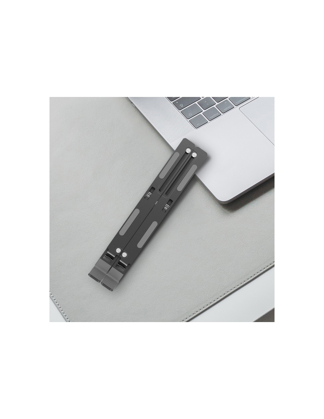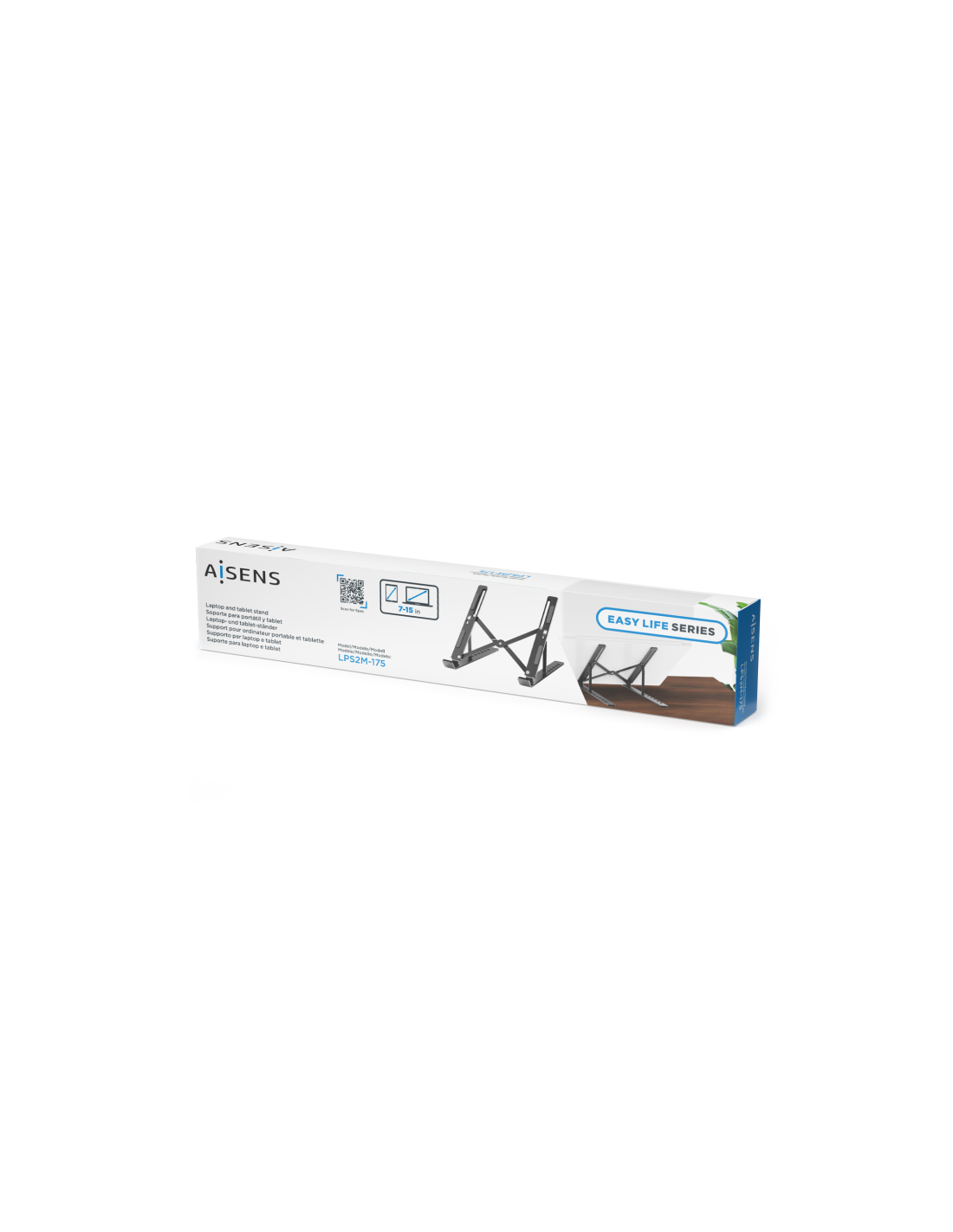 AISENS Soporte de Sobremesa Ajustable para Portatil / Tablet, Gris. Tipo de producto: Soporte para ordenador portátil y tableta, Color del producto: Gris, Material: Aluminio. Longitud: 251 mm. Ancho del paquete: 270 mm, Profundidad del paquete: 50 mm, Altura del paquete: 26 mm. Contenido del paquete: 1 x Soporte de sobremesa plegable y ajustable para portátil o Tablet 1 x Funda para soporte. Ancho de la caja principal: 270 mm, Longitud de la caja: 275 mm, Alto de la caja principal: 280 mm