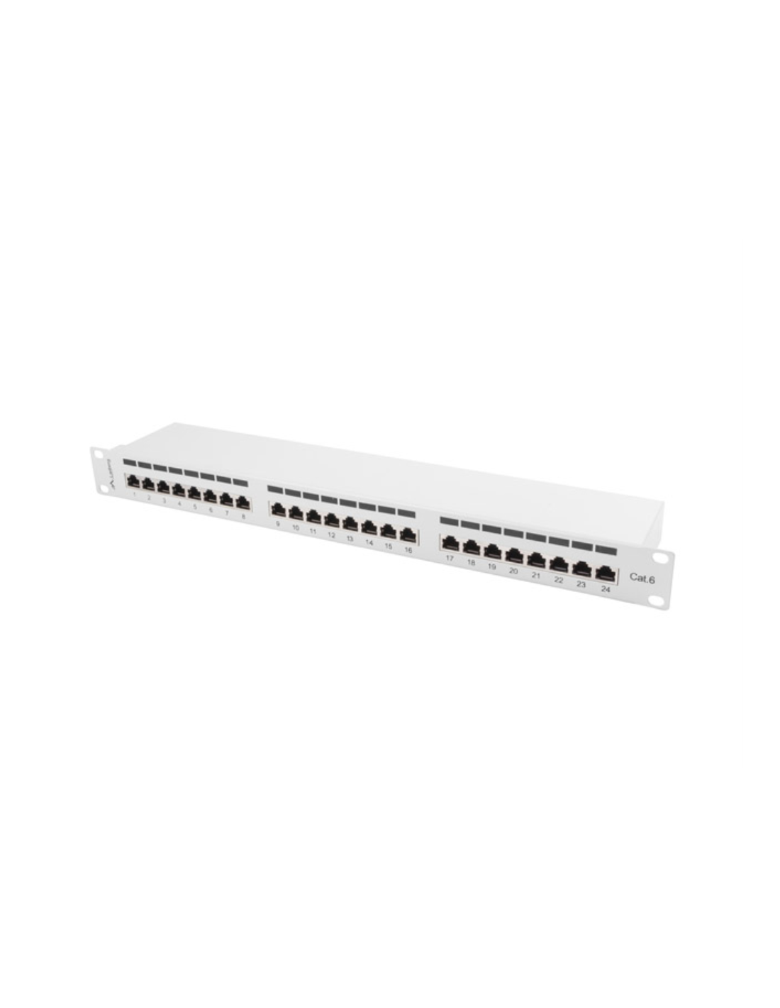 Lanberg PPS6-1024-S. Conector: RJ-45, Tipos de cable soportados: Cat6. Color del producto: Gris, Material: Metal, Montaje: Montaje en bastidor. Certificación: T568A/B. Ancho: 445 mm, Altura: 44,5 mm, Profundidad: 114,5 mm