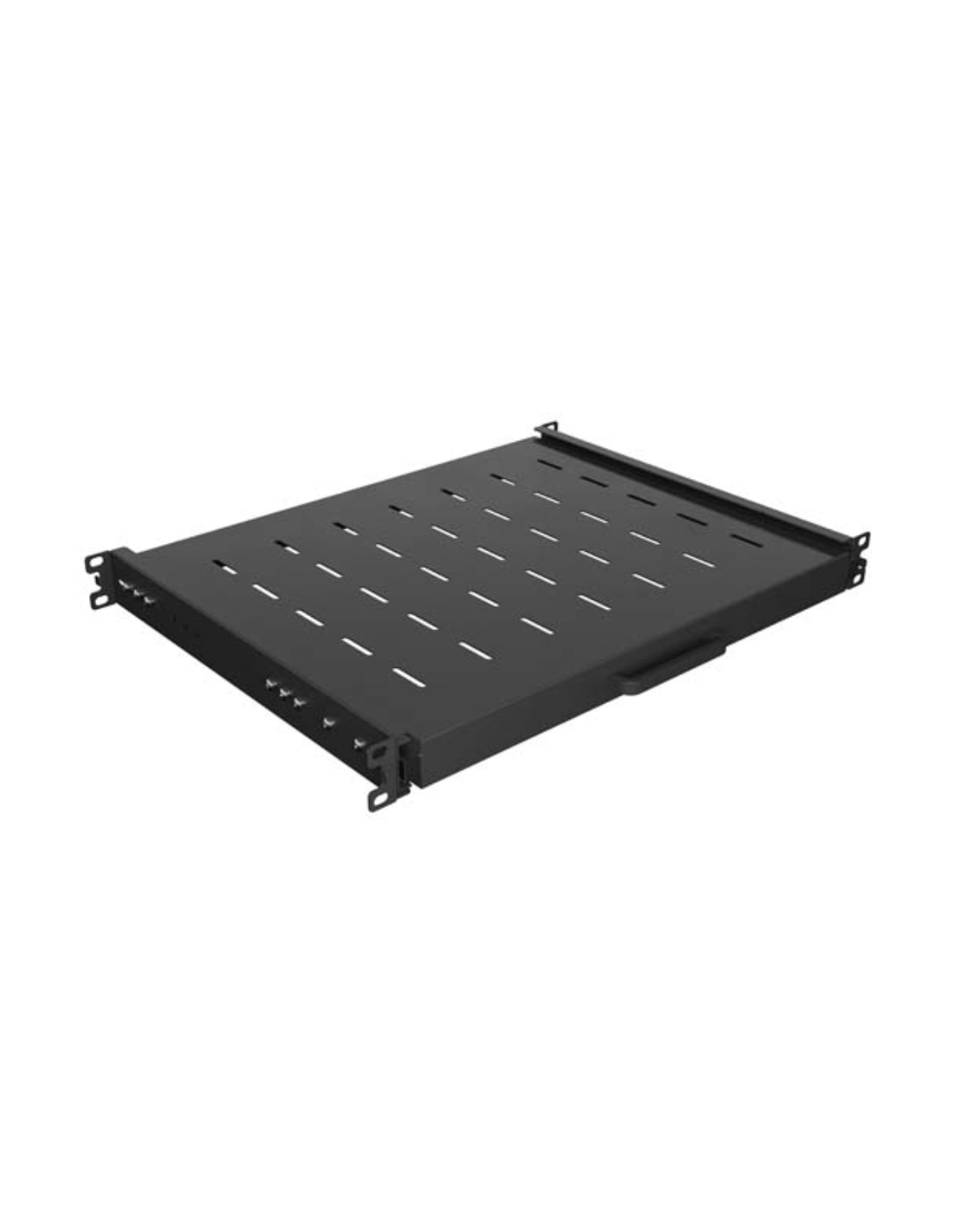 La estabilidad de la estantería está garantizada por un sistema de montaje de cuatro puntos, que confiere a toda la estructura la rigidez y fiabilidad adecuadas. Los soportes de montaje ajustables facilitan la instalación en armarios de distintas profundidades, lo que la convierte en una solución universal y flexible que puede adaptarse a configuraciones específicas. Los prácticos orificios de la superficie de la estantería facilitan la gestión de los cables y favorecen la circulación del aire y la disipación del calor de los dispositivos. Una ventaja adicional es un tirador específico que permite extraer el cajón del armario rack con facilidad y sin problemas, aumentando la funcionalidad de todo el sistema.