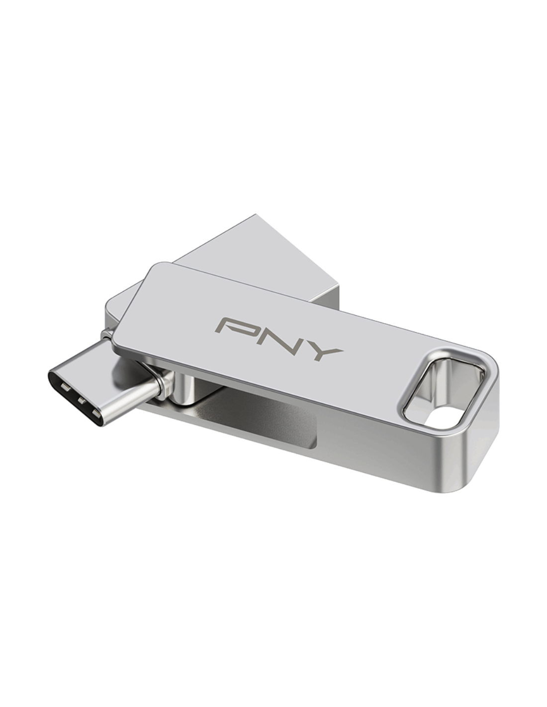 PNY DUO LINK. Capacidad: 128 GB, Interfaz del dispositivo: USB Type-A / USB Type-C, Versión USB: 3.2 Gen 1 (3.1 Gen 1), Velocidad de lectura: 200 MB/s. Factor de forma: Girar, Color del producto: Acero inoxidable
