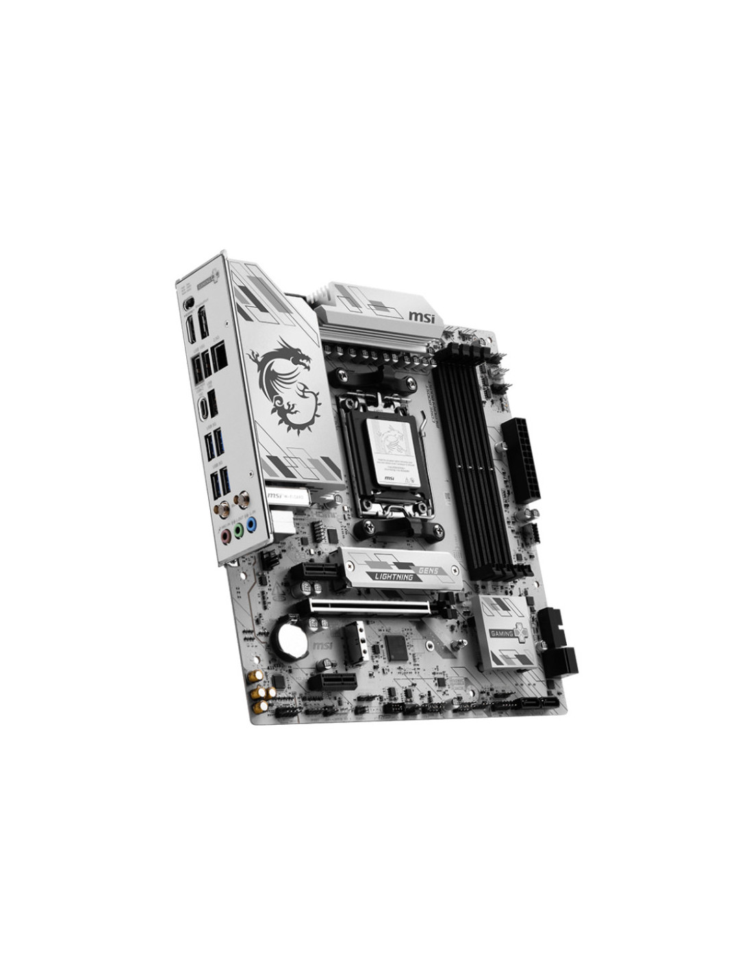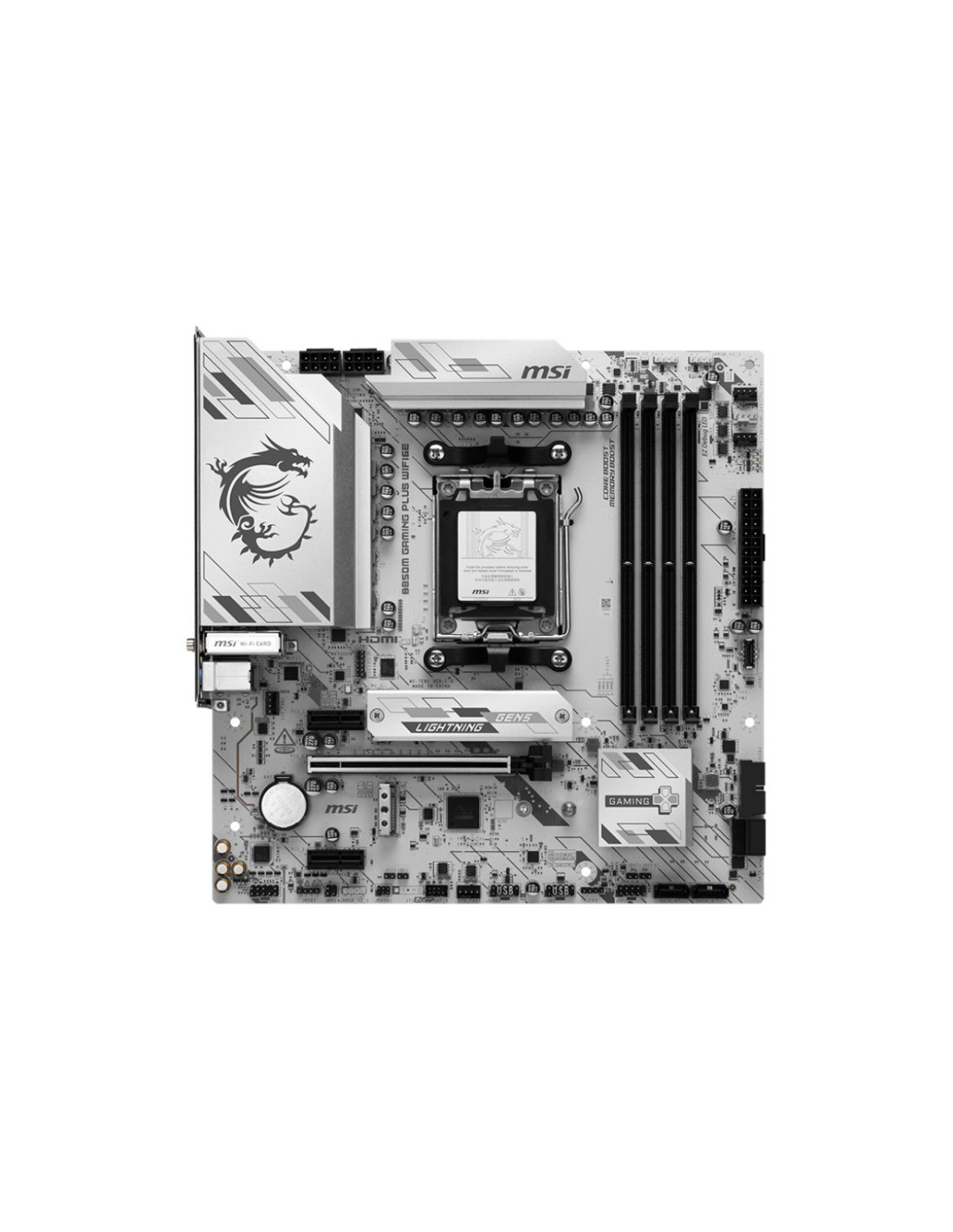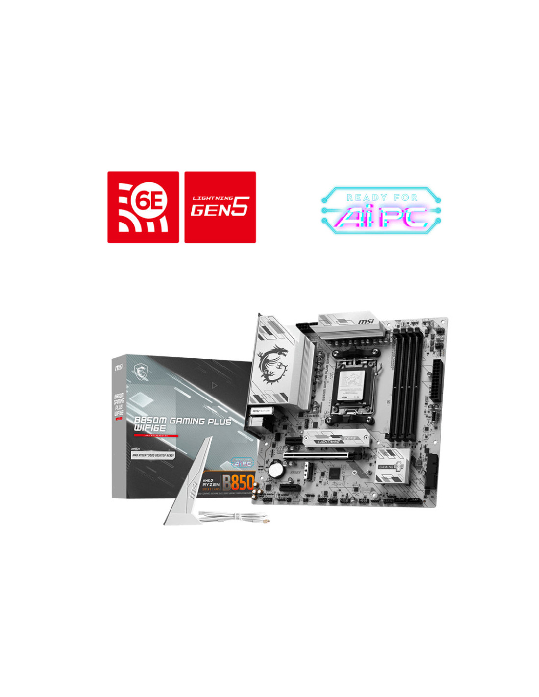 MSI B850M GAMING PLUS WIFI6E. Fabricante de procesador: AMD, Socket de procesador: Zócalo AM5, Procesador compatible: AMD Ryzen 7000 Series, AMD Ryzen 8000 Series, AMD Ryzen 9000 Series. tipos de memoria compatibles: DDR5-SDRAM, Memoria interna máxima: 256 GB, Tipo de ranuras de memoria: DIMM. Interfaces de disco de almacenamiento soportados: M.2, Tipos de unidades de almacenamiento admitidas: HDD & SSD, Niveles RAID: 0, 1, 10. Tipo de interfaz ethernet: 5 Gigabit Ethernet, Controlador LAN: Realtek RTL8126,