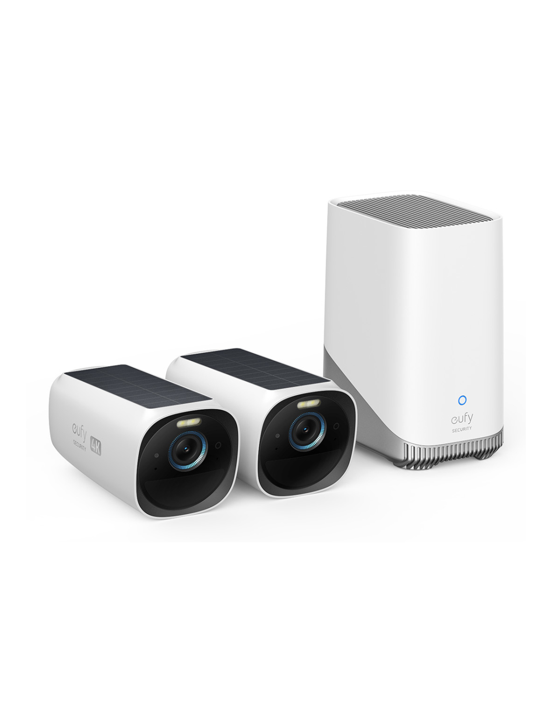 Eufy Kit de 2 cámaras eufyCam 3 de Security, cámara de seguridad 4K con panel solar integrado, IA de reconocimiento facial, cámara de seguridad con almacenamiento local ampliable, cámara exterior con energía constante, foco y visión nocturna en color, sin tasas mensuales. Tipo: Cámara de seguridad IP, Colocación soportada: Exterior, Tecnología de conectividad: Inalámbrico. Tipo de montaje: Pared, Color del producto: Negro, Blanco, Factor de forma: Caja. Ángulo de campo de visión (FOV): 135°. Distancia de vi