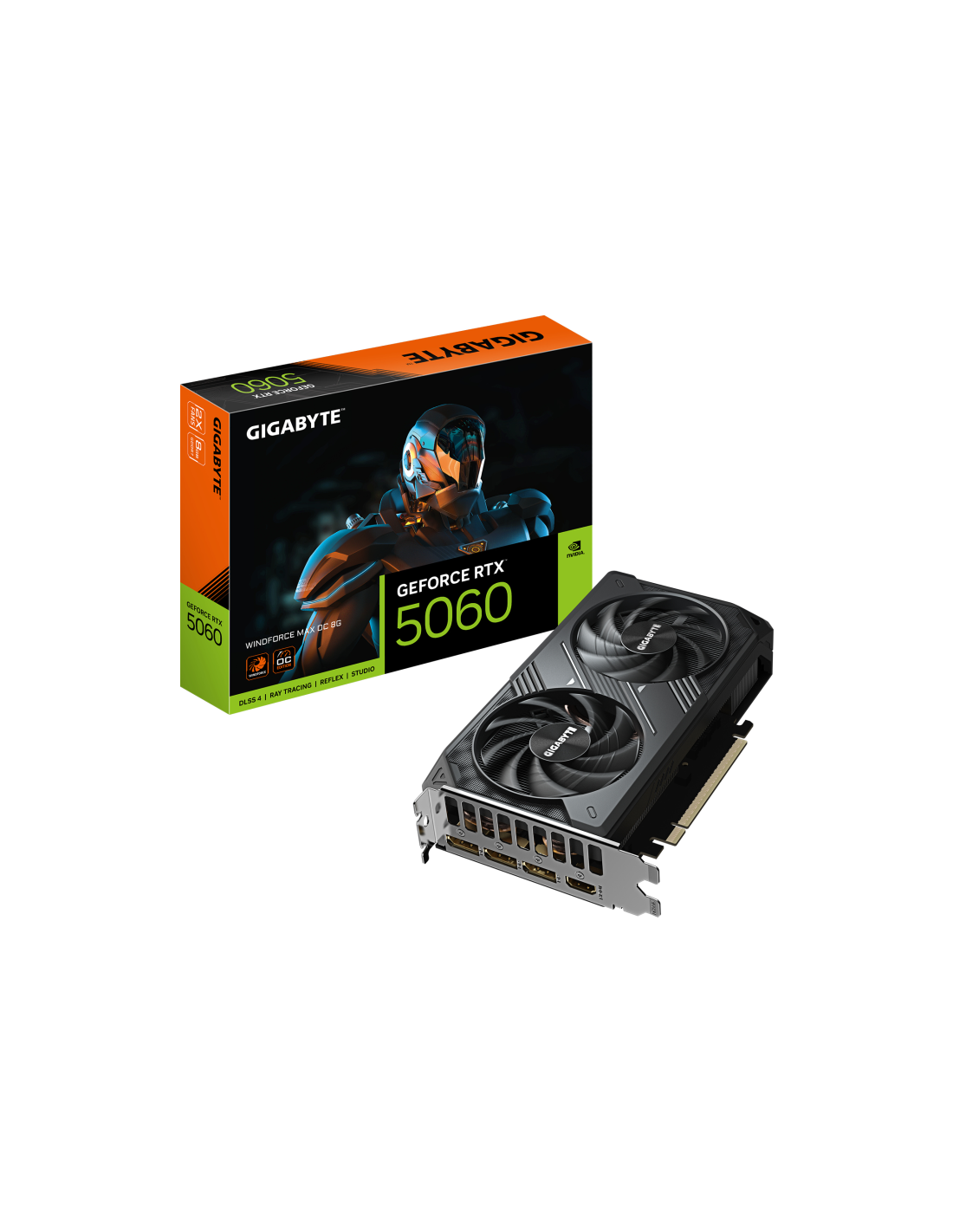 GIGABYTE GeForce RTX 5060 WINDFORCE MAX OC 8G Tarjeta Gráfica – 8 GB GDDR7, 128 bits, PCI-E 5.0, 2512 MHz Frecuencia del núcleo, 3 x DisplayPort, 1 x HDMI, NVIDIA DLSS 4, GV-N5060WF2MAX OC-8GD. Familia de procesadores de gráficos: NVIDIA, Procesador gráfico: GeForce RTX 5060, Frecuencia del procesador: 2512 MHz. Capacidad memoria de adaptador gráfico: 8 GB, Tipo de memoria de adaptador gráfico: GDDR7, Ancho de datos: 128 bit, Velocidad de memoria del reloj: 28000 MHz. Máxima resolución: 7680 x 4320 Pixeles.