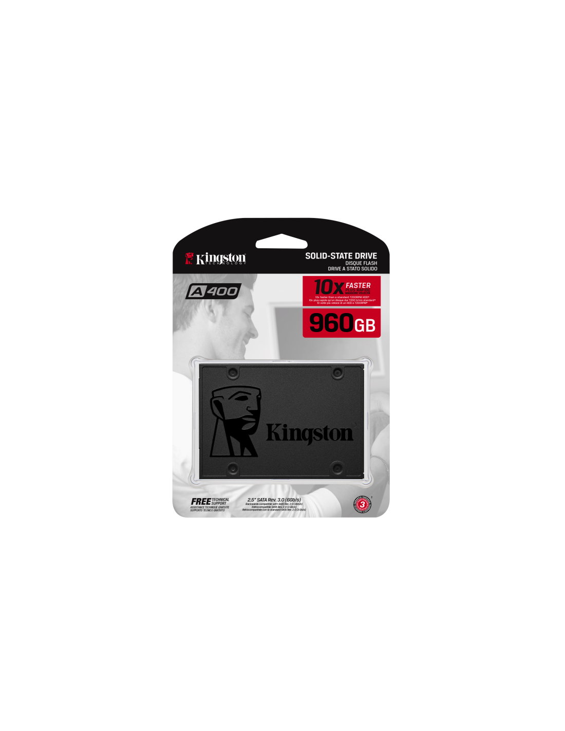 Los discos de estado sólido A400 de Kingston mejoran drásticamente la capacidad de respuesta de su actual sistema con velocidades de arranque, carga y transferencia increíbles en comparación con las de los discos duros mecánicos. Equipado con el controlador más avanzado que le permite alcanzar velocidades de lectura y escritura de hasta 500 MB/s y 450 MB/s*, este SSD es diez veces más rápido que un disco duro convencional**, lo cual le permite ofrecer un mayor rendimiento, potenciar la multitarea y agilizar el funcionamiento del sistema.