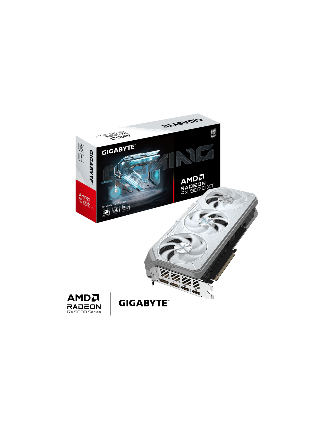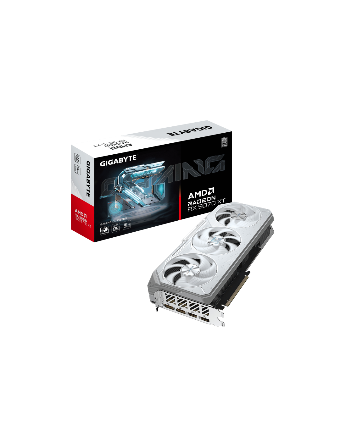 GIGABYTE Radeon RX 9070 XT GAMING OC ICE 16G Tarjeta Gráfica - 16GB GDDR6, 256bit, PCI-E 5.0, 3060 MHz Frecuencia del núcleo, 2 x DisplayPort, 2 x HDMI, GV-R907XGAMINGOCICE-16GD. Familia de procesadores de gráficos: AMD, Procesador gráfico: Radeon RX 9070 XT. Capacidad memoria de adaptador gráfico: 16 GB, Tipo de memoria de adaptador gráfico: GDDR6, Ancho de datos: 256 bit, Velocidad de memoria del reloj: 20000 MHz. Máxima resolución: 7680 x 4320 Pixeles. Versión DirectX: 12.0, Versión OpenGL: 4.6. Tipo de