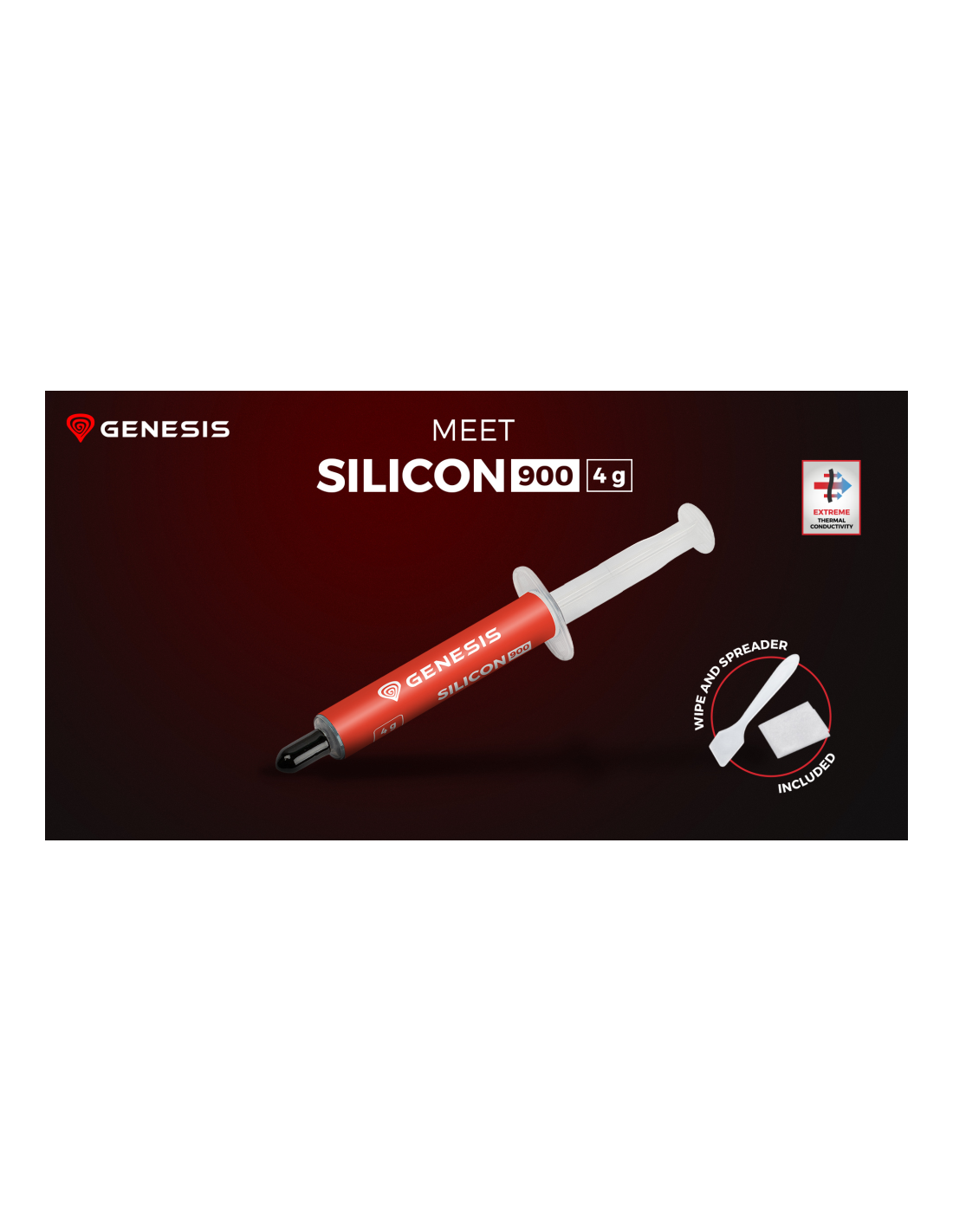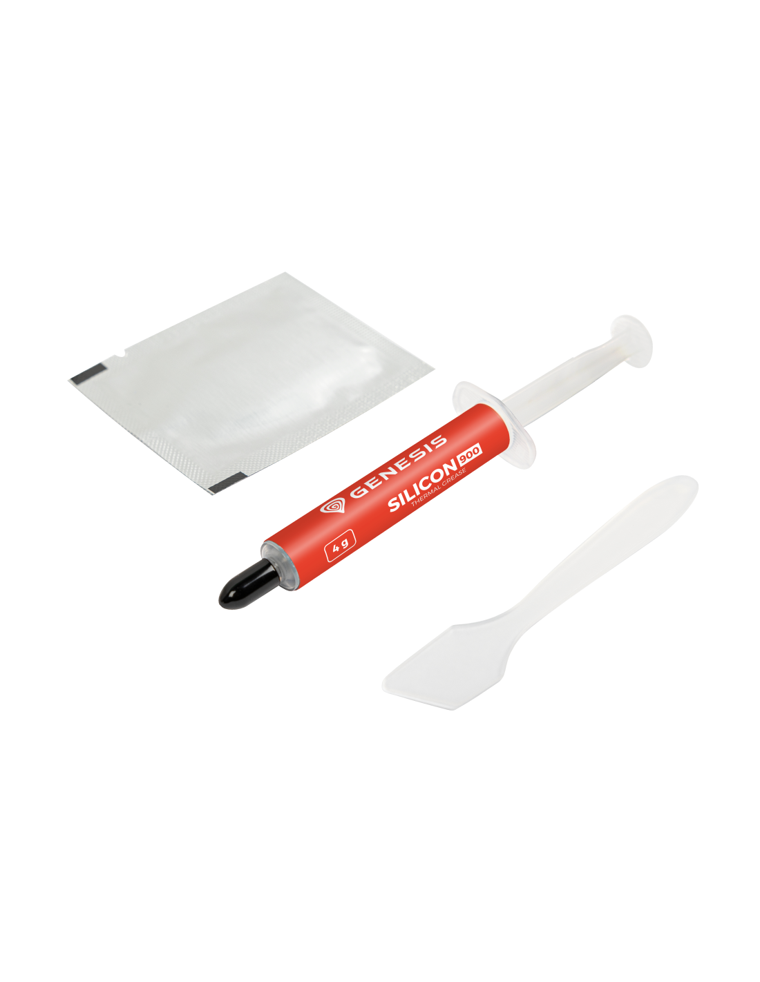 Te presentamos GENESIS Silicio 900: una pasta conductora térmica de alto rendimiento que te ayudará a ganar la desigual batalla contra las temperaturas. No basta con una densidad óptima y unas buenas propiedades de conductividad térmica. En el kit encontrarás un paño humedecido y una espátula para facilitar la aplicación.