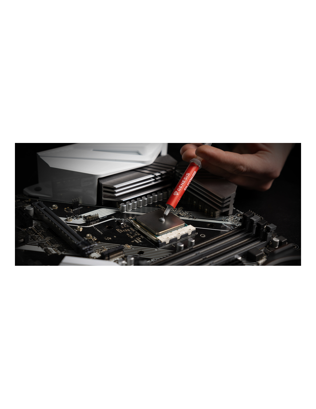 ¿Bajas temperaturas de los componentes? A partir de hoy puedes conseguirlas con GENESIS Silicio 900, una pasta conductora térmica fácil de aplicar que se distingue por su alta conductividad térmica (12,8 w/-K). No necesitas calentarla, obtendrás valores óptimos de conductividad térmica desde los primeros segundos tras la aplicación. Además, la pasta GENESIS se distingue por su fórmula segura, que significa ausencia de conductividad y resistencia a la corrosión.