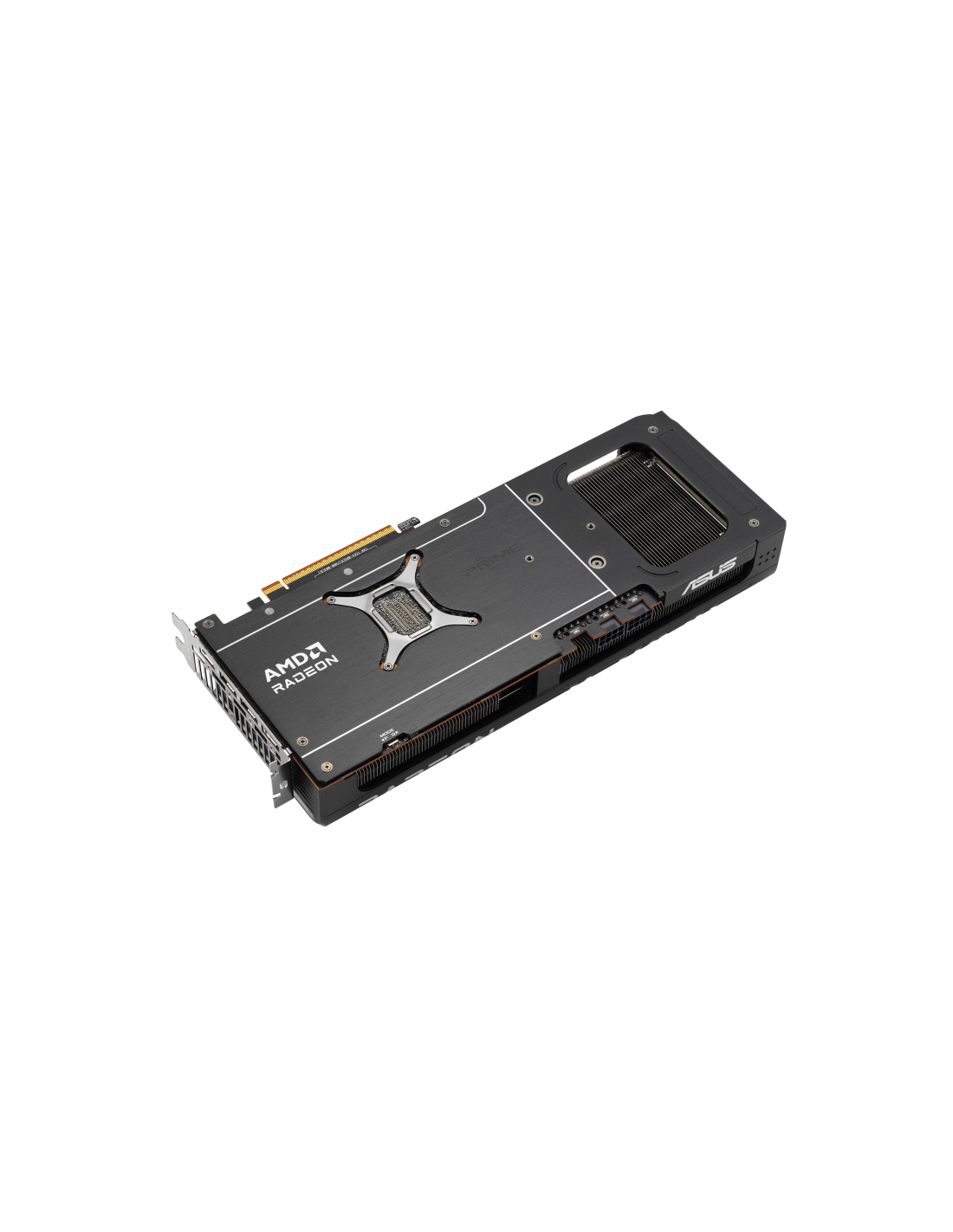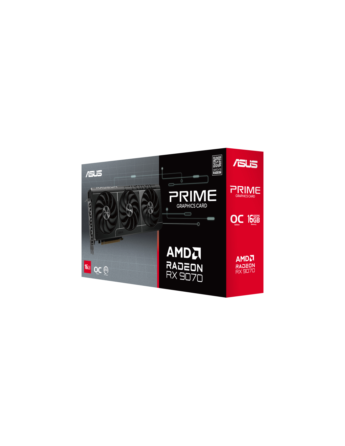 ASUS Prime -RX9070-O16G. Familia de procesadores de gráficos: AMD, Procesador gráfico: Radeon RX 9070. Capacidad memoria de adaptador gráfico: 16 GB, Tipo de memoria de adaptador gráfico: GDDR6, Ancho de datos: 256 bit. Máxima resolución: 7680 x 4320 Pixeles. Versión DirectX: 12 Ultimate, Versión OpenGL: 4.6. Tipo de interfaz: PCI Express 5.0. Tipo de enfriamiento: Activo, Número de ventiladores: 3 Ventilador(es)