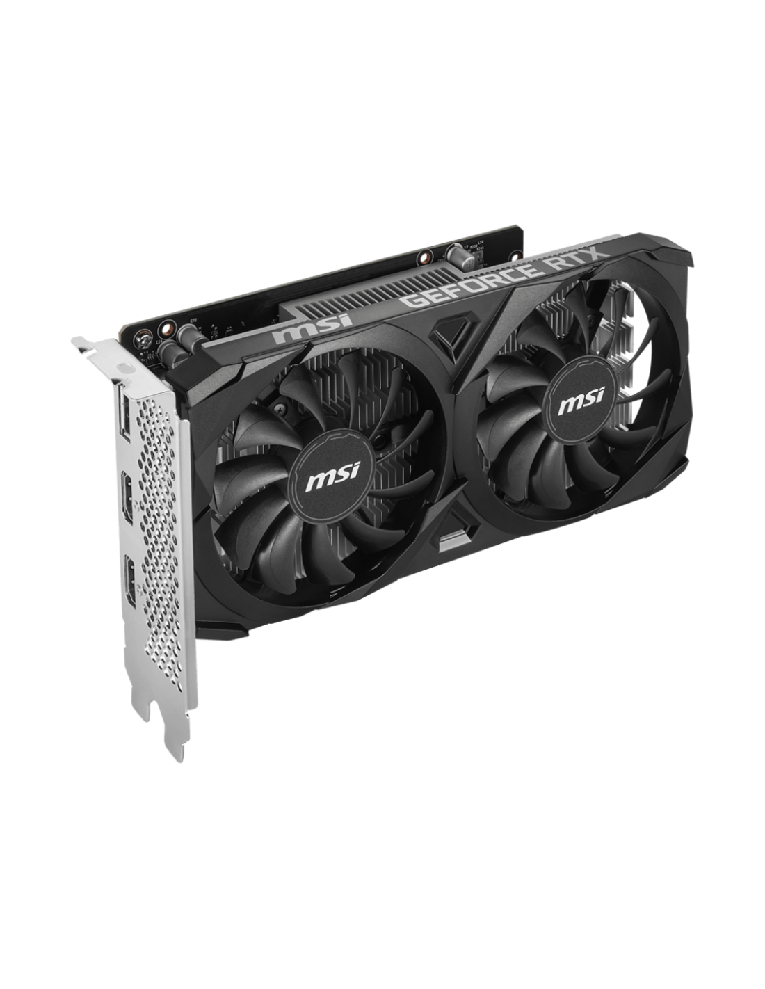 MSI VENTUS GeForce RTX 3050 2X E 6G OC. Familia de procesadores de gráficos: NVIDIA, Procesador gráfico: GeForce RTX 3050. Capacidad memoria de adaptador gráfico: 6 GB, Tipo de memoria de adaptador gráfico: GDDR6, Ancho de datos: 96 bit. Máxima resolución: 7680 x 4320 Pixeles. Versión DirectX: 12 Ultimate, Versión OpenGL: 4.6. Tipo de interfaz: PCI Express x8 4.0. Tipo de enfriamiento: Activo, Número de ventiladores: 2 Ventilador(es)