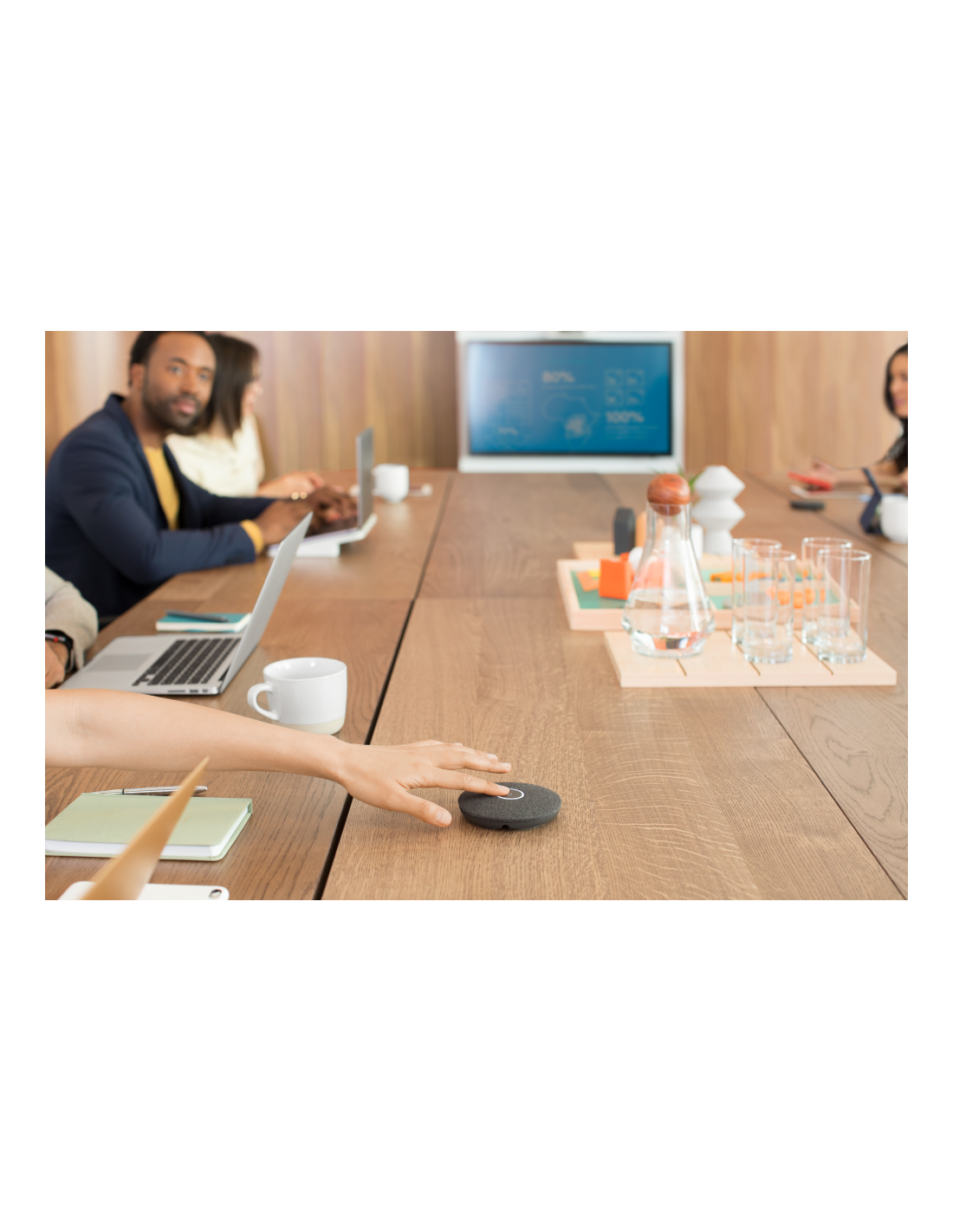 Las bases de micrófono se pueden conectar en serie para ofrecer una cobertura total en salas con mesas largas. Para mesas dispuestas en forma de U o cableado simple a través de pasacables, el hub de base de micrófono Rally proporciona tres conexiones con que optimizar la colocación y acercar el control de silenciamiento.