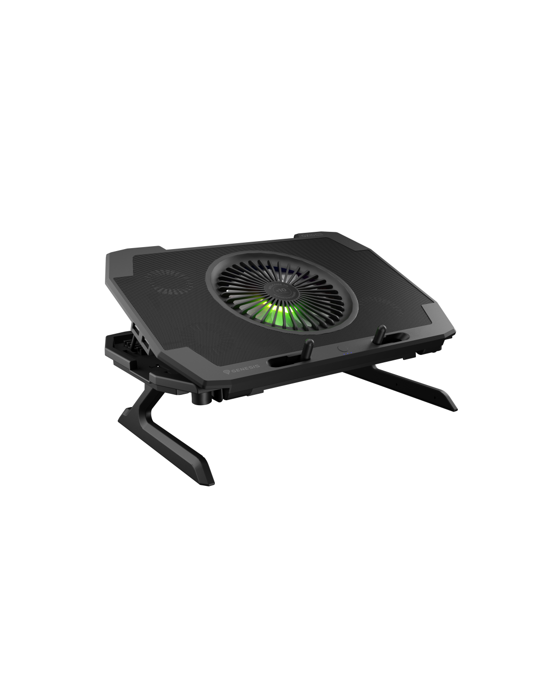 GENESIS Oxid 850. Tamaño máximo de pantalla: 43,9 cm (17.3"), Número de ventiladores incluidos: 5 pieza(s), Diámetro de ventilador: 14 cm. Color del producto: Negro, Material: Acrilonitrilo butadieno estireno (ABS), Metal. Interfaz de host: USB. Alimentación: USB, Voltaje de entrada: 5 V. Ancho: 400 mm, Profundidad: 270 mm, Altura: 35 mm