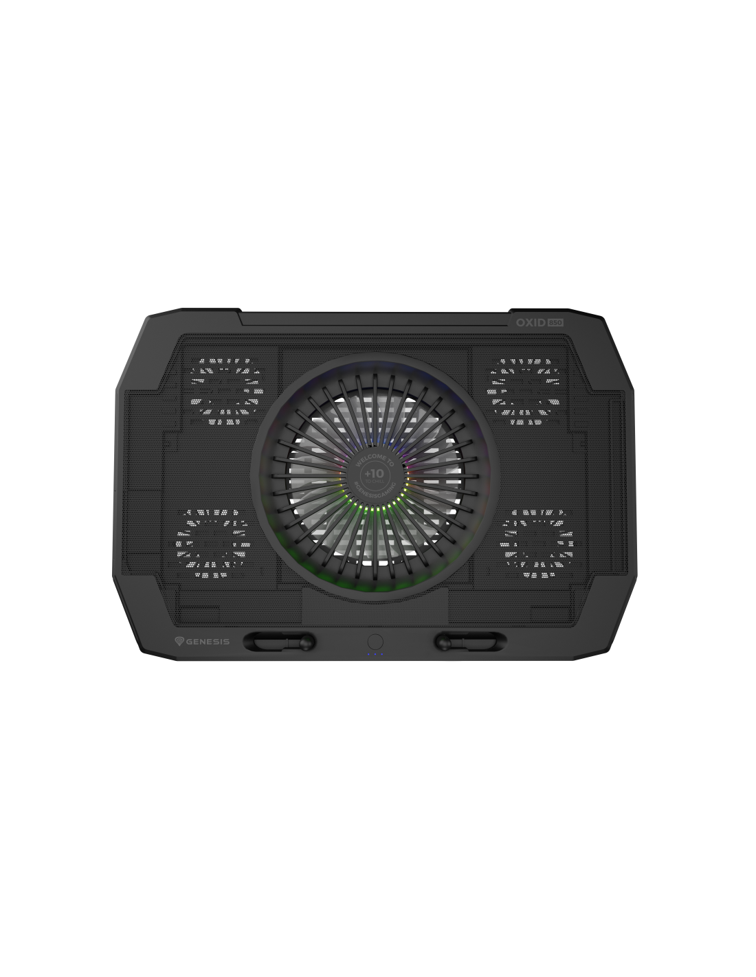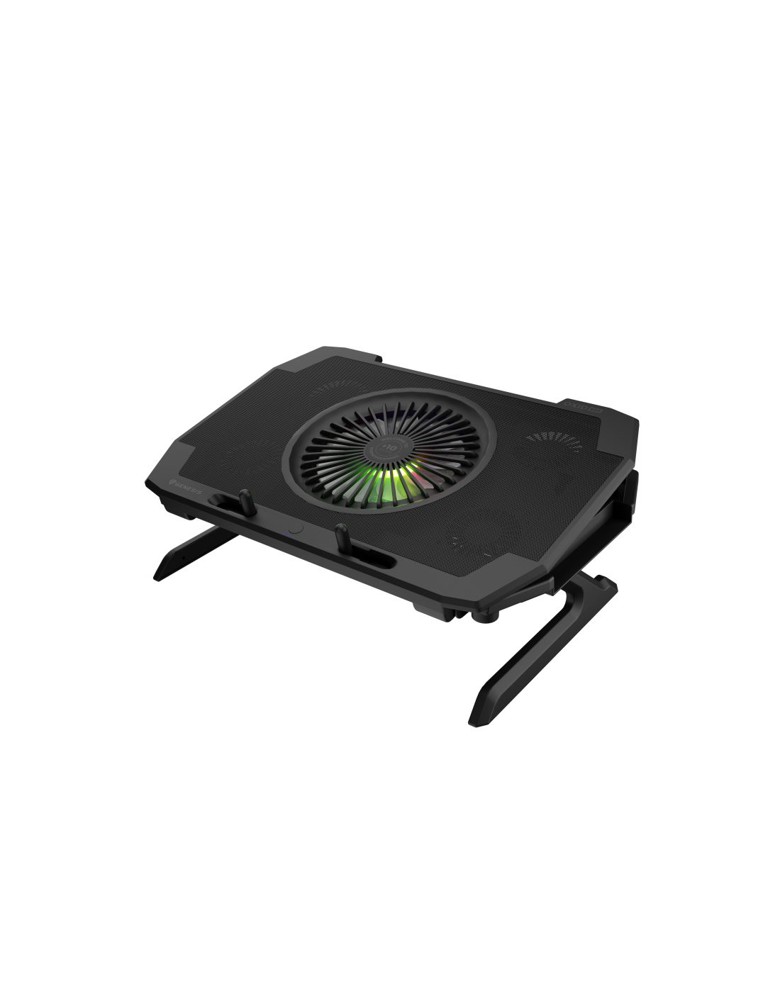 Oxid 850 es un soporte de refrigeración dedicado a portátiles con una diagonal de hasta 17,3" que ayuda a mantener la temperatura adecuada del dispositivo durante intensas sesiones de juego. Sus pies plegables aumentarán la ergonomía de trabajo y la espectacular iluminación RGB del ventilador principal será el complemento perfecto para cualquier sala de juegos.