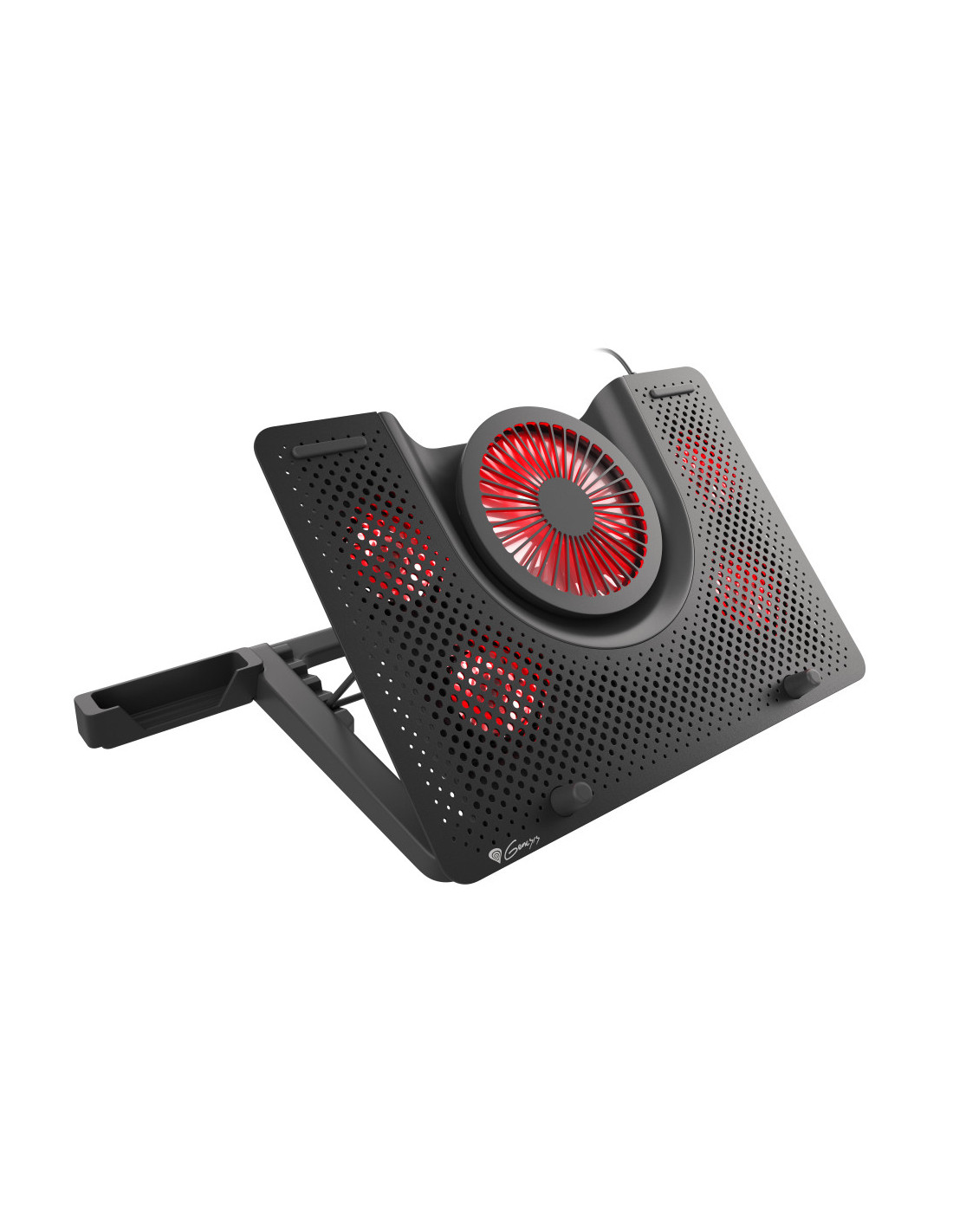 ¿Las largas sesiones nocturnas de juego hacen que tu portátil se sobrecaliente y esto te impide seguir jugando? El soporte de refrigeración Genesis Oxid 550 no sólo enfriará los componentes de su ordenador, sino que también le sorprenderá por su elegante diseño y su iluminación roja que hará que cualquier estación de trabajo sea única.
