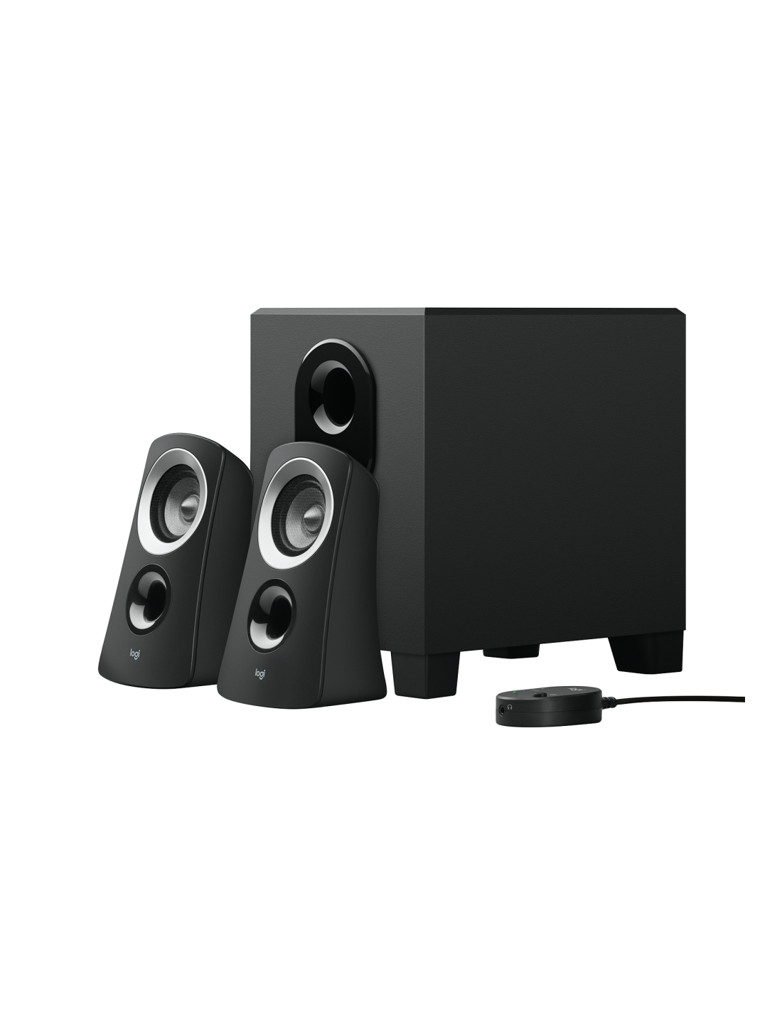 Logitech 980-000413. Canales de salida de audio: 2.1 canales, Potencia estimada RMS: 25 W, Uso recomendado: PC. Potencia RMS de altavoces satélite: 5 W, Dimensiones de bocina satelital (AxLxA): 81 x 89 x 146 mm, Peso de bocina satelital: 240 g. Potencia RMS de subwoofer: 15 W, Dimensiones de subwoofer (AxLxA): 220 x 150 x 228 mm, Peso de subwoofer: 2,3 kg. Fuente de energía: Corriente alterna, Tipo de enchufe: Tipo C. Tecnología de conectividad: Alámbrico, Conectividad en línea de entrada: 3.5 mm, Auricular