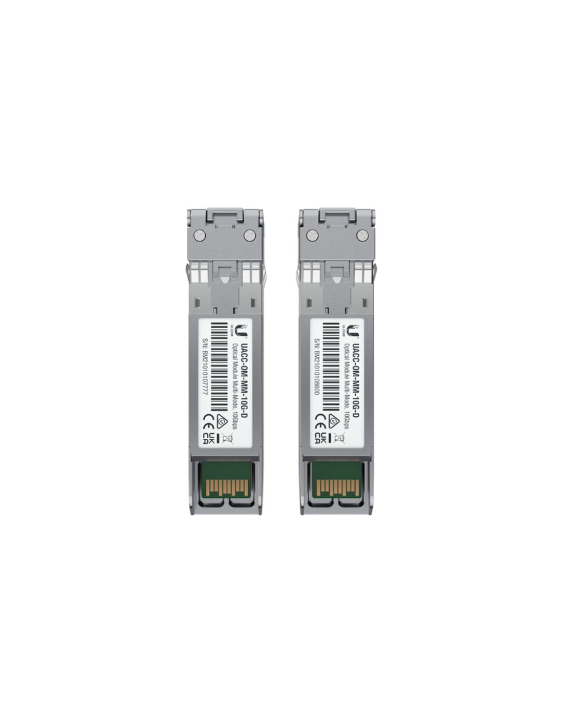 Ubiquiti UACC-OM-MM-10G-D-2. Tipo de transceptor SFP: Fibra óptica, Rango máximo de transferencia de datos: 10000 Mbit/s, Conector fibra óptica: LC. Color del producto: Plata, Material de la carcasa: Metal. Consumo energético: 0,8 W. Cantidad por paquete: 2 pieza(s)